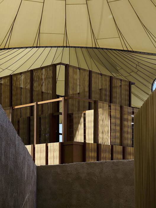 Text description provided by the architects. Titled "On Weaving," the winning pavilion of the Diriyah Biennale Foundation's inaugural AlMusalla Prize reconciles the historic and contemporary, giving new life to the ancient architectural traditions of Islamic prayer.
