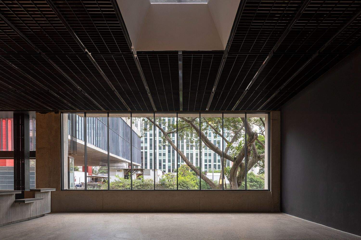 The project pays subtle homage to Lina Bo Bardi's original building through the use of carefully selected materials. The black hardwood floors, for example, are a direct reference to the black floor of MASP. Basalt stone, used in several details, including the sidewalk and staircase of the original building, is also present in the new building. Exposed concrete, a hallmark of Lina's project, is another key material that reinforces this connection. The metallic skin covers the building up to a certain height, while the ground floor is wrapped in clear glass, preserving the feeling of openness and integration with the surroundings. "When the elevator doors open, you will have a full view of the art galleries, without walls of any kind, reinforcing the idea of immediate connection of the public with the art pieces just as it happens at MASP’s picture gallery" explains Gustavo Cedroni