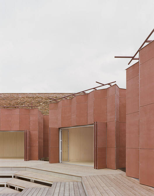 Text description provided by the architects. The new Burgbühne Beeskow comprises three pavilions with an outdoor stage located in the center of the listed ensemble of the castle complex. This medieval castle has a rich history of construction and reuse. Today, the buildings serve as the regional cultural and educational center, acting as a central meeting place for the rural community.