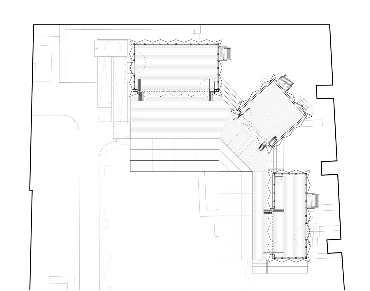 The pavilions and outdoor stage were developed with the vision of multifunctional cultural use, created through close collaboration between the users and the architects. The stage provides a performance venue for actors and musicians, while the pavilions function as stage sets or dressing rooms. The accessible roofs are also integrated into the stage design. In addition to summer events, the pavilions host castle festivals, workshops, and a small gallery during the winter months.