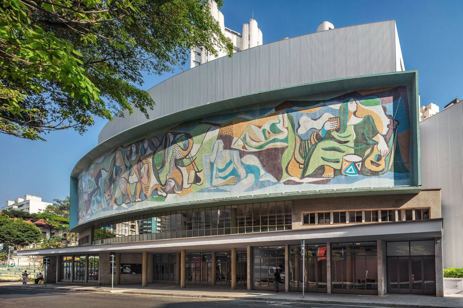 The exterior wall featured a large mural selected through a competition involving painter Emiliano Di Cavalcanti, who was chosen, along with landscape architect Roberto Burle Marx and architect Jacob Ruchti. Spanning the entire façade, the mural was executed with glass tesserae by Vidrotil, measuring 48 meters by 8 meters in height. The theme depicted female figures, allegories of theater, such as dance, music, comedy, drama, and opera. Due to its architectural and cultural significance, the building was listed as a heritage site at federal, state, and municipal levels.