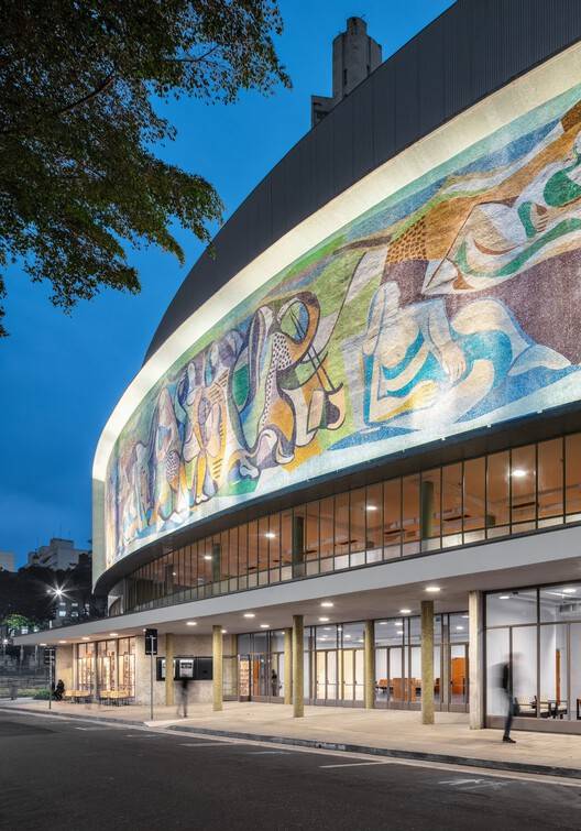 Text description provided by the architects. Since 1919, Sociedade de Cultura Artística has cherished the dream of having its own theater. Designed in 1942 by architects Rino Levi, Roberto Cerqueira Cesar, and F. Pestalozzi, the TEATRO CULTURA ARTÍSTICA was built between 1947 and 1949. The inauguration, held on the evenings of March 8 and 9, 1950, was marked by two extraordinary concerts conducted by Heitor Villa-Lobos and Camargo Guarnieri, prepared specifically for the occasion. These concerts celebrated the opening of what was then one of the largest and most modern cultural complexes in Latin America. Initially, the auditorium had 1,500 seats arranged in a wide fan shape, with a double rear wall to shield the interior from external noise. The visibility and acoustics had been carefully studied, providing excellent conditions.