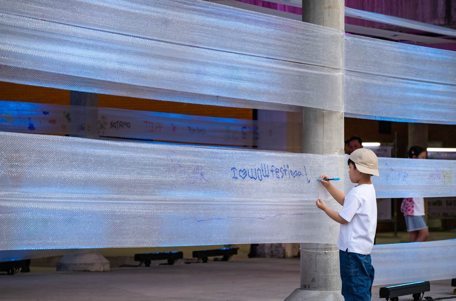 Common Material in a New Perspective: Air Bubbles – This exhibition showcases the innovative use of air bubbles, a common material reimagined in an architectural context. The design integrates seamlessly with both the original structure and the surrounding garden. This translucent material creates diverse dimensions and viewpoints within each module. The intentional spaces between the pieces allow for airflow and unique perspectives of the environment. Additionally, visitors are encouraged to engage with the exhibition by drawing or painting images of animals, insects, and other living creatures found in the garden on the material's surface. This participatory concept transforms the exhibition into a "living artwork," which evolves and grows through human interaction.