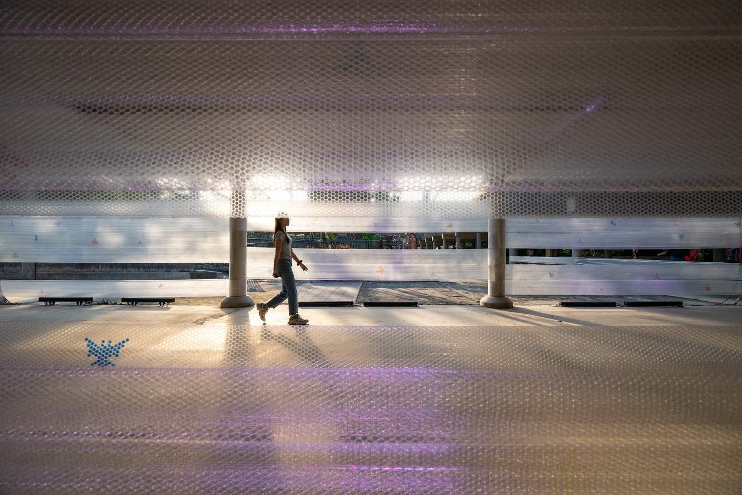 设计理念的卓越性:Wonder Live走廊项目最令人称道的,是其对城市环境问题的深刻回应。面对曼谷严重的空气污染,设计师巧妙地将艺术与功能结合,创造了一条“呼吸通道”。这种设计理念超越了简单的美学追求,旨在恢复人与自然、环境之间的平衡。项目选址于Benjakitti公园,将公共艺术融入自然,充分利用了公园的现有资源。这种对城市困境的敏锐洞察和积极回应,使得该项目具备了强烈的社会意义和人文关怀,为解决城市环境问题提供了新的思路。