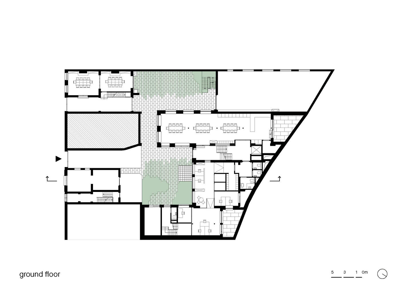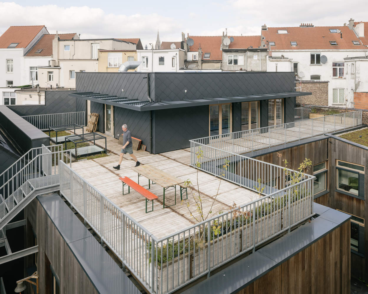 匹配-低环境影响应该在建筑上具有高影响。保护、翻新和改造的选择不仅对减少隐含碳至关重要,而且还挑战我们发挥增量拼凑的现象,以揭示空间的巨大多样性。根据我们将现有结构和能量流与特定活动相匹配的目标,我们为该项目的计划做出了一些明显的选择,比如后面的旧风琴工作室成为绿色和平活动家的工作室,或者把客房放在前面的排屋里。然而,在前后之间,我们设计了一系列精心设计的室内外空间、公共和私人区域,以及或多或少有条件的室内气候,为绿色和平组织的动态和不断变化的组织提供了多种空间选择。