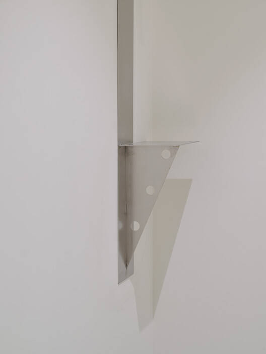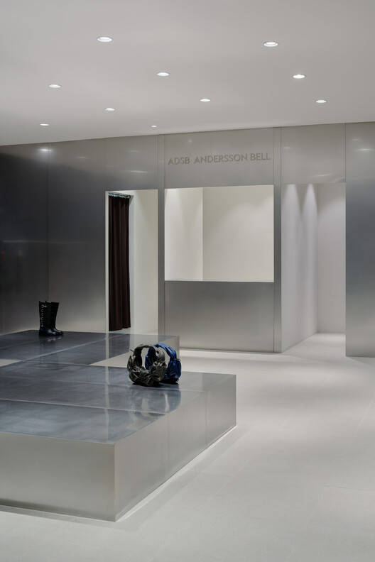 建筑师提供的文字描述设计始于一个问题,“我们如何在保持极简主义的同时引入变化?”我们在创造一个传达丰富而动态表达的空间的同时,最大限度地减少了视觉干扰。通过结合坚固的金属元素,我们探索了可以有效展示服装和配饰的配置。前部的金属面板强化了凉爽和重复的美学。