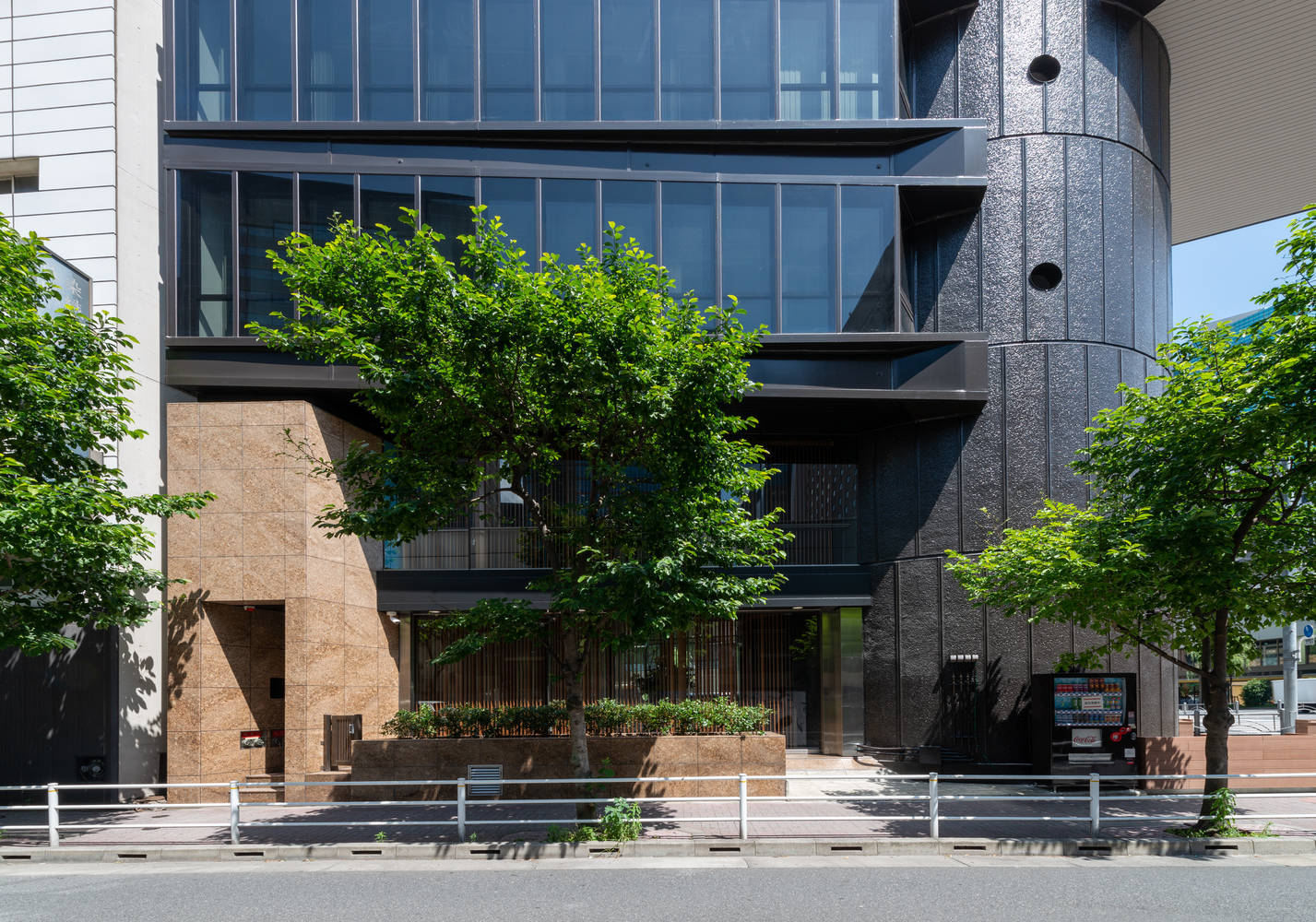 Text description provided by the architects. This project involved preserving and restoring a modernist building built in 1967 in Ginza, Tokyo, known as an example of Metabolism architecture. This building is a distinctive work by Kenzo Tange, one of Japan's most celebrated architects, who devised a creative new form for a small site located in a place that symbolizes Japan's post-war period of rapid economic growth. The cylindrical core at the center of the building houses vertical circulation routes such as stairs, elevators, and piping. The office spaces protrude outwards from the core, giving it a distinctive appearance.