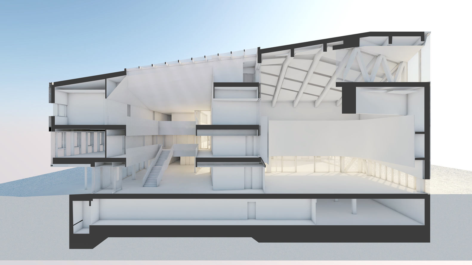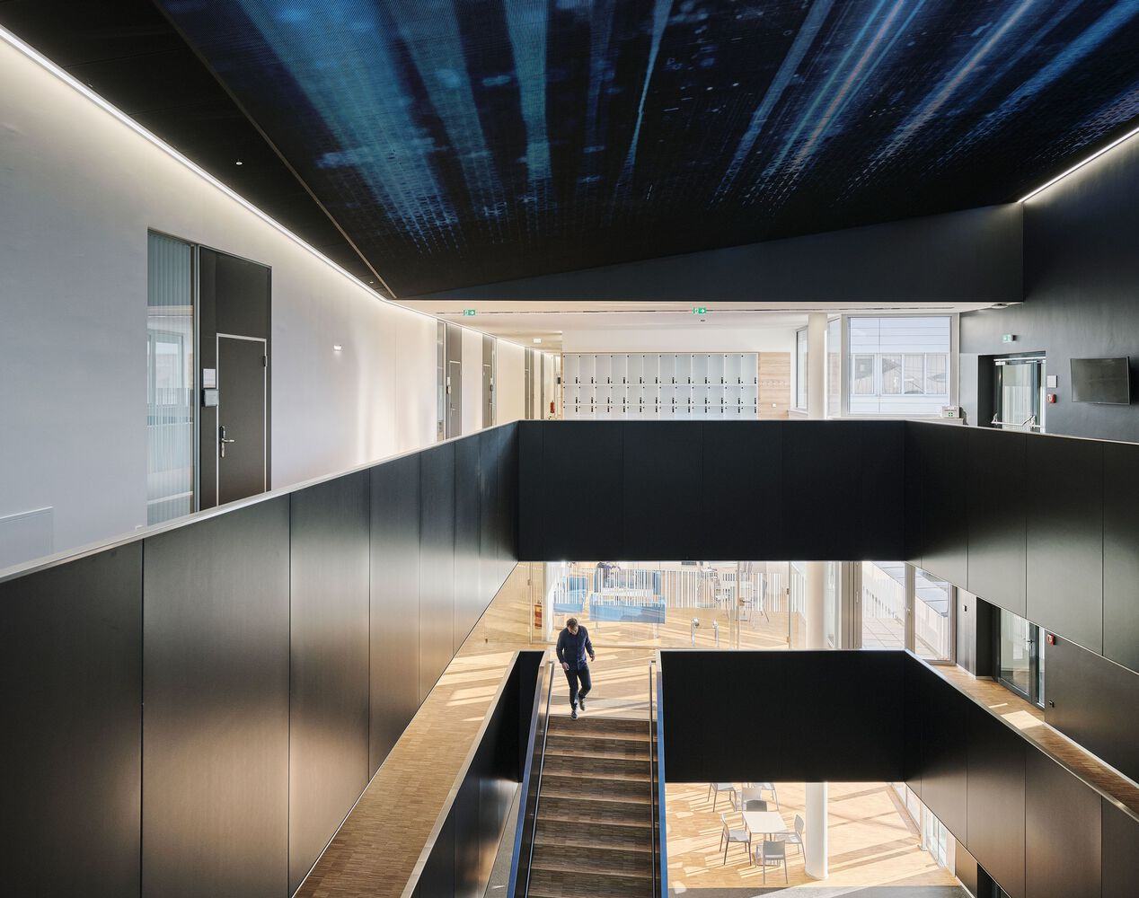 内部空间的多功能性与灵活性:该项目在内部空间的设计上展现了高度的实用性和灵活性。建筑师考虑到数字化之家的多重功能需求,包括数字技术展厅、初创公司办公室、咖啡馆以及大学礼堂,进行了巧妙的空间布局。尤其是核心展厅的设计,它能够灵活地转换为活动大厅,并配备360°LED墙,为参观者提供了沉浸式的体验。这种多功能的空间设计,不仅满足了不同使用场景的需求,也为建筑赋予了持续的生命力,使其能够适应未来不断变化的需求。