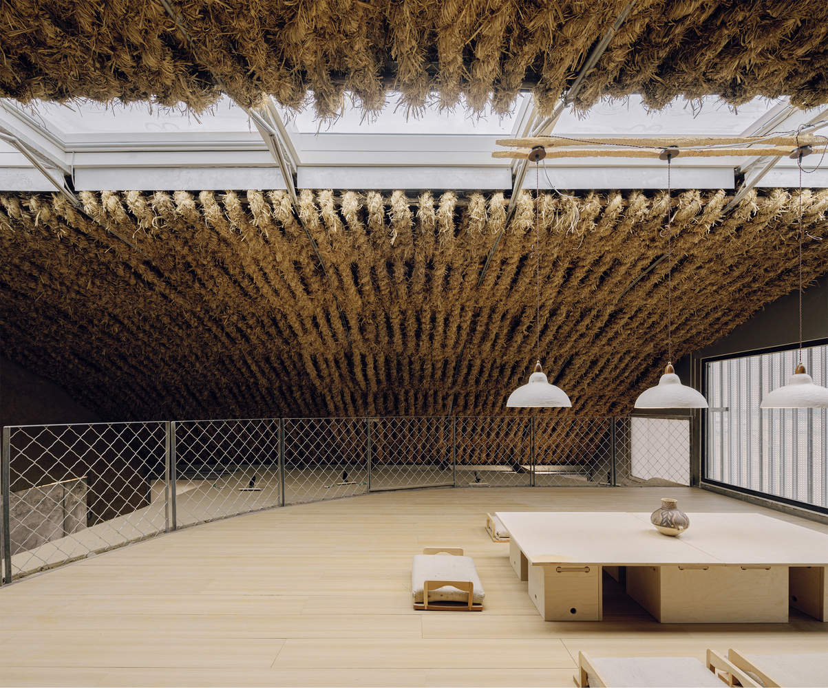 同时,走廊也用于夏季烹饪,冬季屠宰和储存肉类,满足牧民的生活需求。拱形屋顶在夹层地板上创造了一个类似蒙古包的空间,在聚会时刻唤起了一种文化传统感。