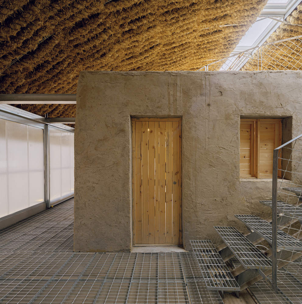 适应季节-秸秆砖墙的优异热性能和金属外壳包围的气候缓冲区确保了舒适的室内气候和低能耗。在冬季,热量集中在稻草砖部分,而气候缓冲区将热量损失到外部。夏季,透气外壳提供有效的空气流通,保持室内凉爽舒适。
