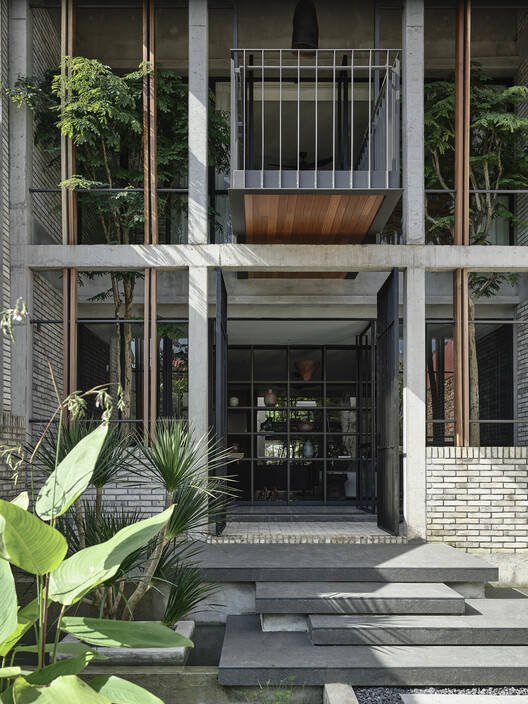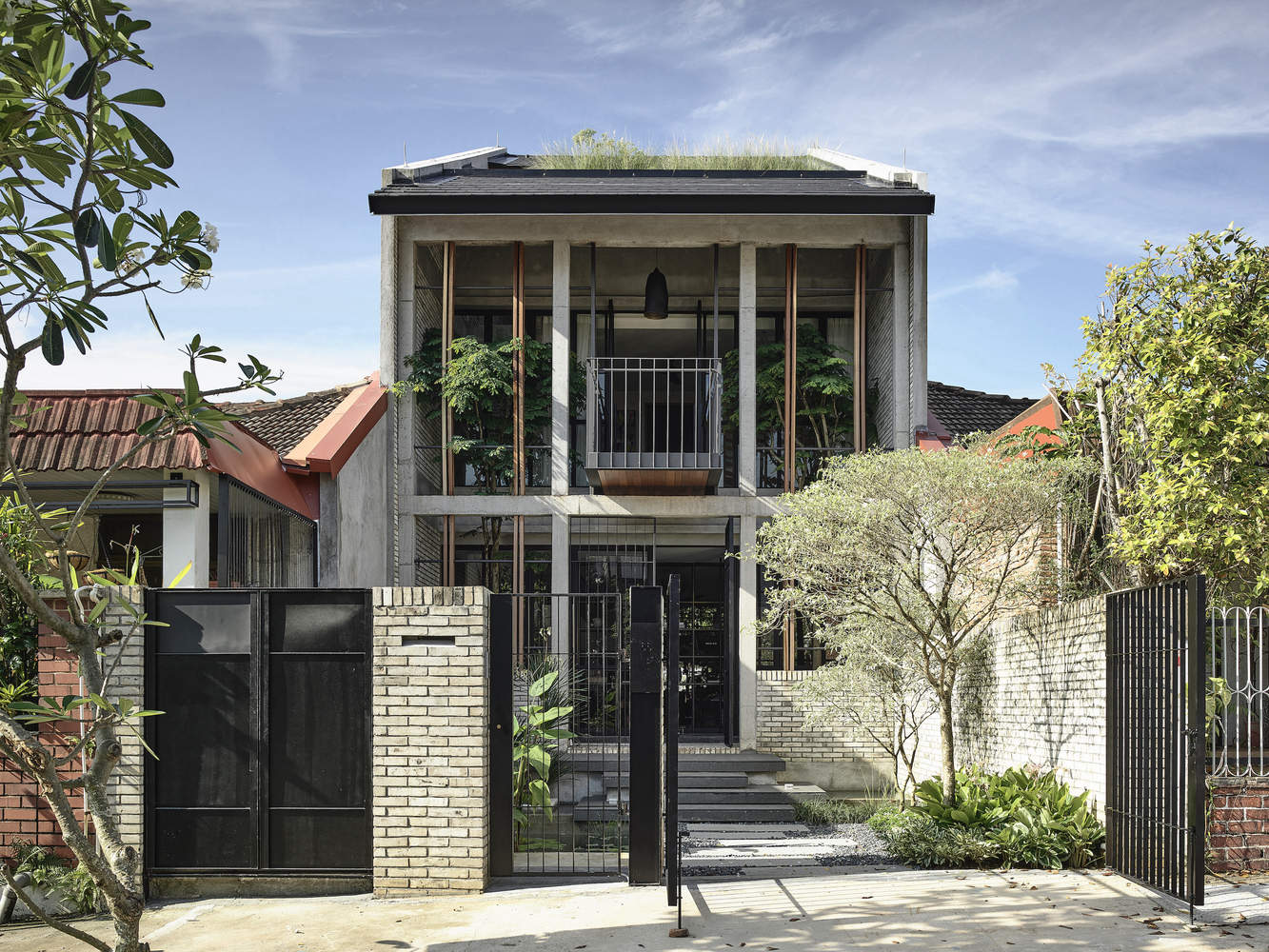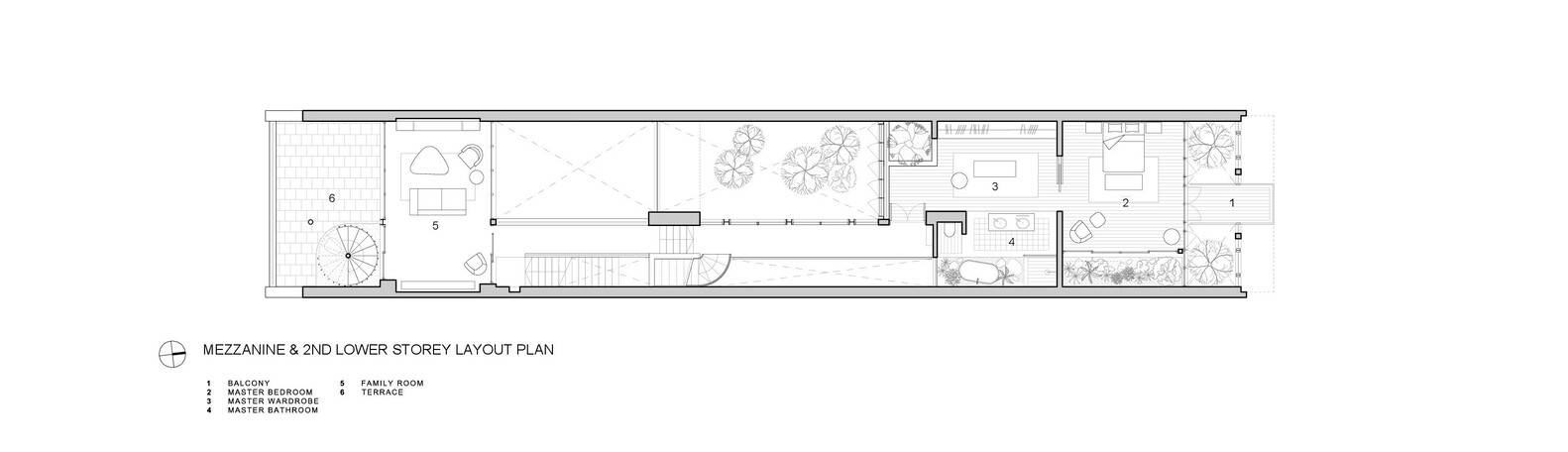 Elements of a shophouse typology are abstracted to its most basic form and recomposed into this house. The front of the house adapts the symmetry of the shophouse, where two leopard trees are nestled boldly on each corner, peering through the narrow front façade shielding the house from weather and providing privacy. Seemingly, the client's passion for landscape is also rooted in the design of the house, where planters are strategically planned along the circulation.
