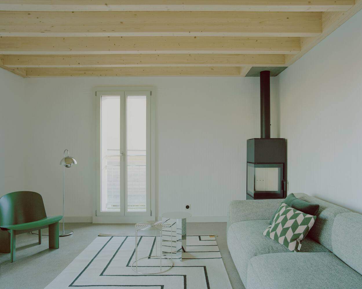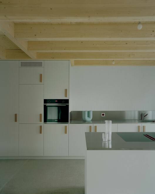 建筑细节与材料的选择: 项目在材料选择和建筑构造上展现出卓越的专业性和对细节的关注。实心隔热砖的选择,既保证了建筑的耐久性,又提供了优异的保温性能,体现了对节能环保的重视。混凝土和木材的结合运用,在建筑底部创造了坚实的基础,而在上层空间则带来了轻盈和温暖的居住氛围。设计师对混凝土颜色的选择,以及石灰膏和硬石膏砂浆的使用,都体现了对材料质感和环保性的考量。这些精心的材料选择和构造细节,不仅提升了建筑的品质,更使其与当地的建筑文脉紧密相连,形成独特的地域特色,在现代建筑中展现了对传统的尊重。