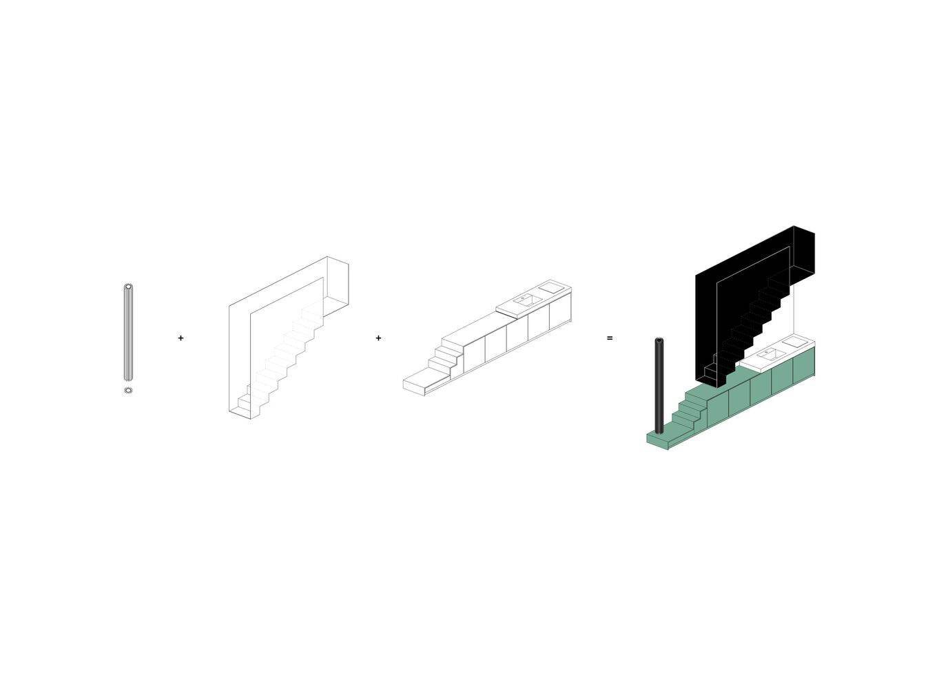 It is precisely in this attempt that this project arises, an opportunity to rethink housing in these unique and historic spaces of the city. The base is one of those typical semi-detached houses on urban islands, measuring 4 meters across, 4 meters deep, with two floors, 3 windows and a door.