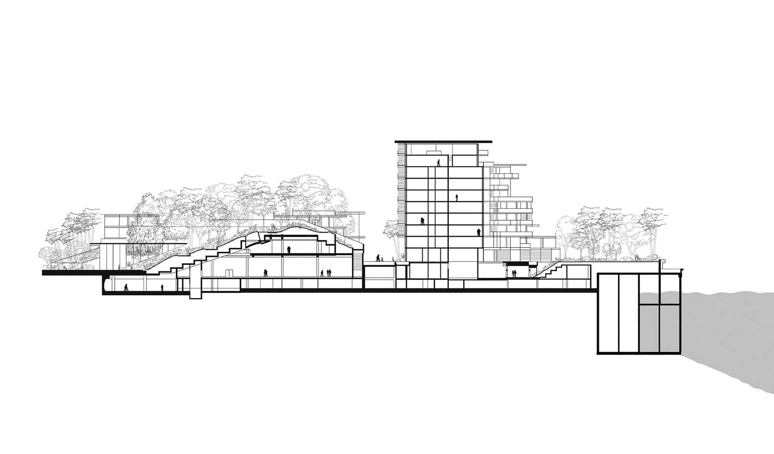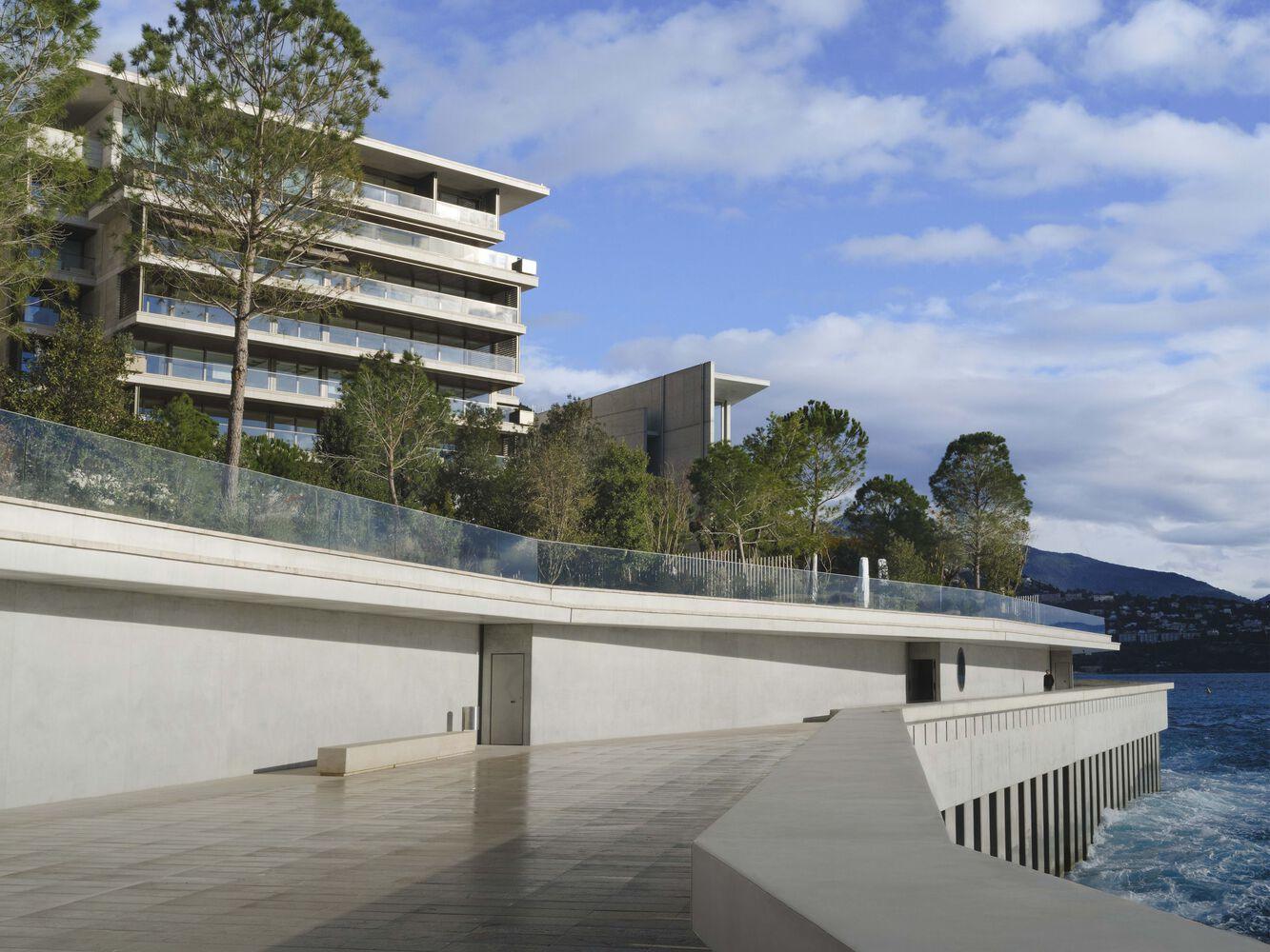 如此建造的平台在其中心被一座郁郁葱葱地种植着大型石松的山丘所抬高,从而为它所环绕的新海岸线曲线带来了更和谐的感觉。位于这一延伸线上的地区是多样化的,但也是一体化的。别墅坐落在海边,就像里维埃拉最早的城市定居点一样,然后逐渐上升,形成面向大海的上部建筑。在山下,一组展厅与邻近的格里马尔迪论坛相辅相成。南部坐落在一个小码头旁边,周围有餐馆和商店。一座位于港口和大海之间的大型公寓楼,以桩的形式,构成了该项目最具海洋性的部分。它是由建筑师伦佐·皮亚诺设计的。