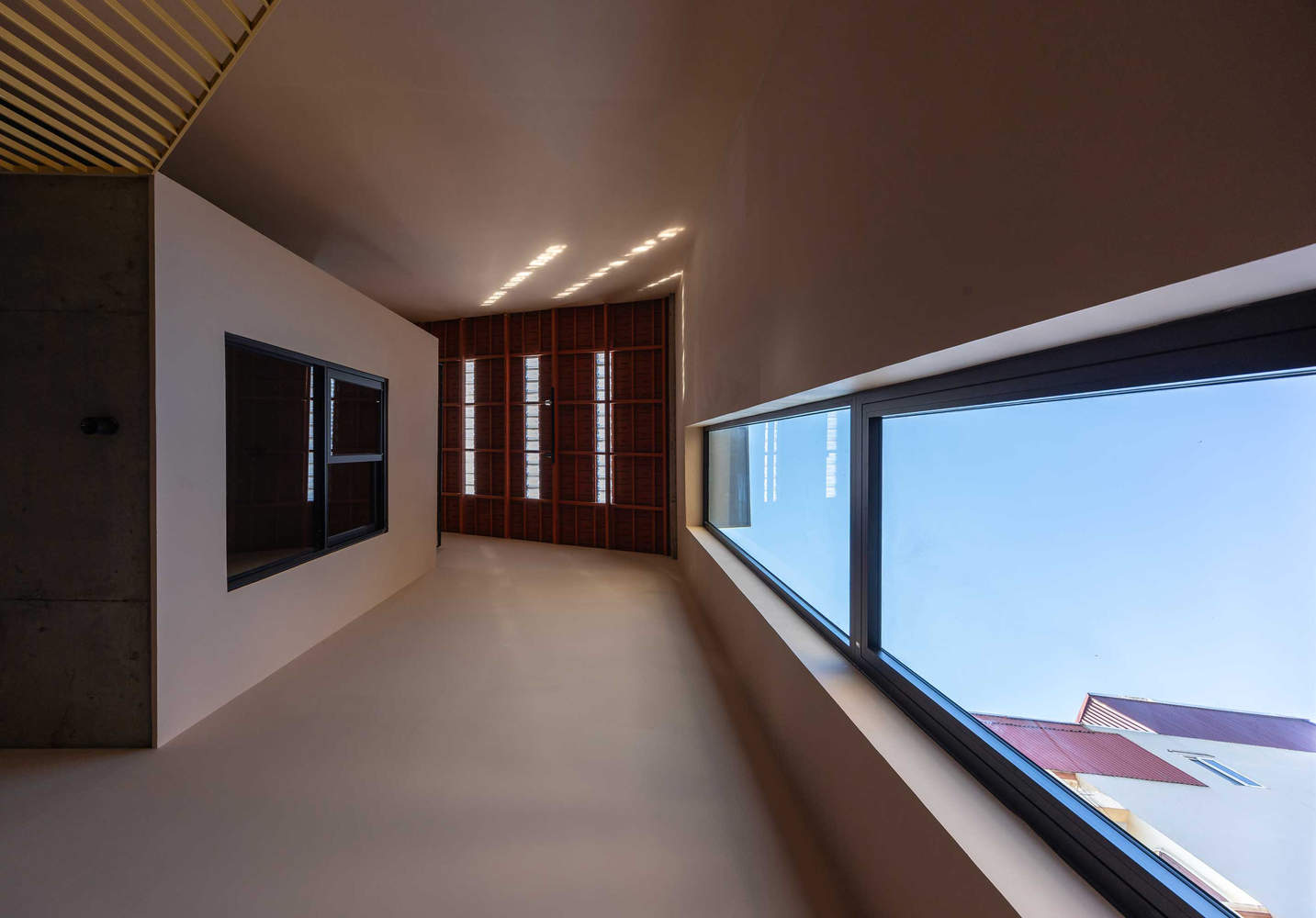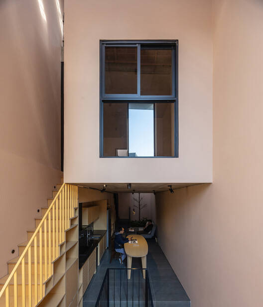 Regardless of the fact that the house has limitations in size and view, it does not lack large voids that bring in natural light and energy. Seemingly, the sky is the only thing that sets no limits for the house.