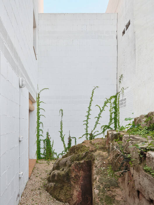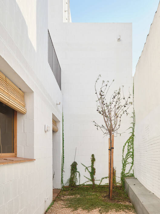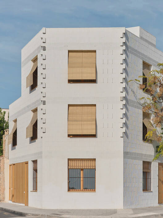 Text description provided by the architects. The project is located on a narrow and small plot, previously occupied by a marés stone quarry, at the intersection of Rut Street and Darwin Street, in the neighborhood of El Coll d'en Rabassa, right at the boundary of Palma municipality. Aiming to complete the irregular urban fabric and respond to the climate emergency, the proposal suggests the construction of eleven homes that integrate into the site, adapting to the pre-existing conditions.
