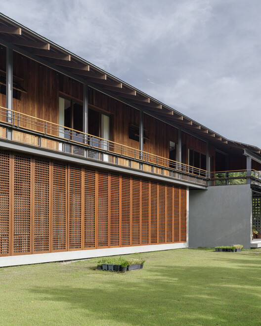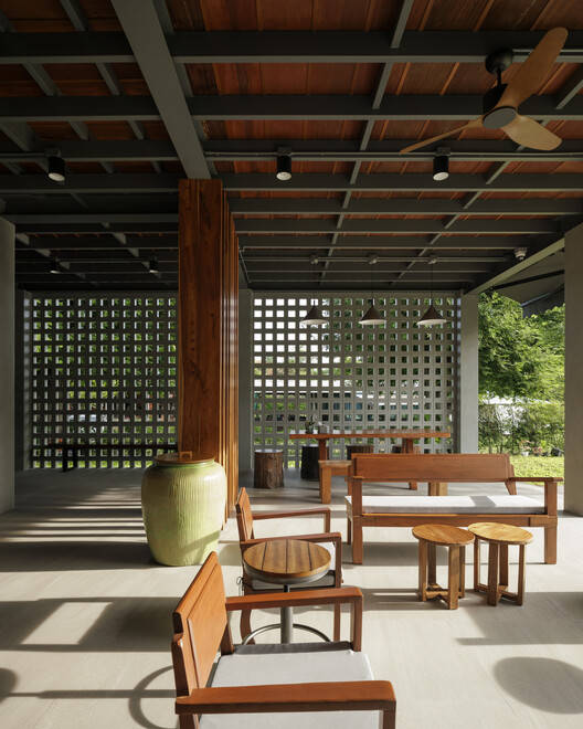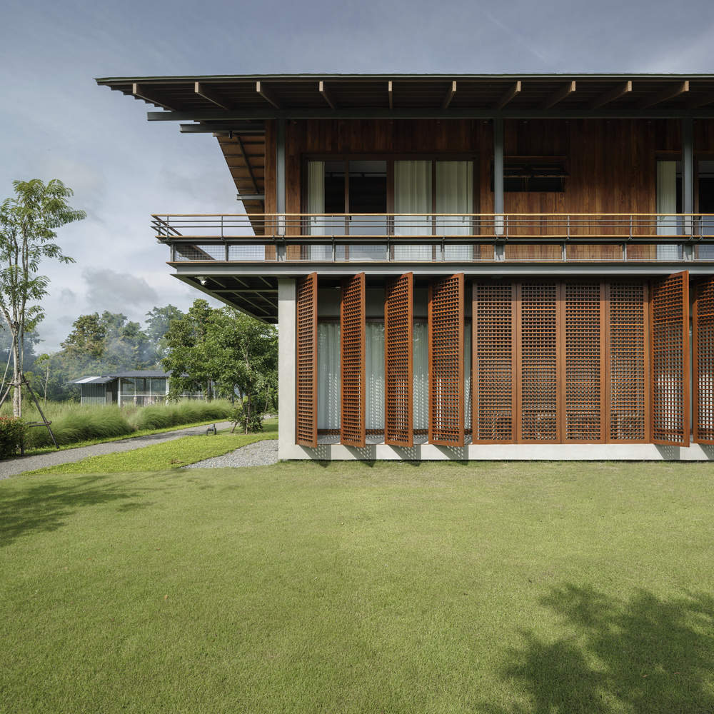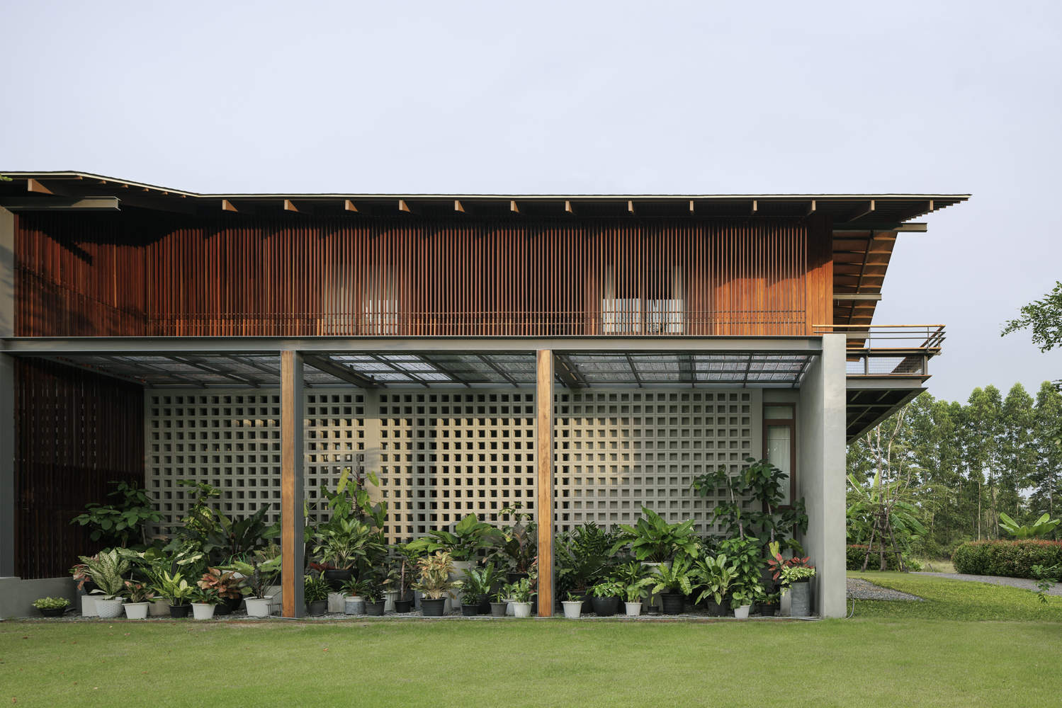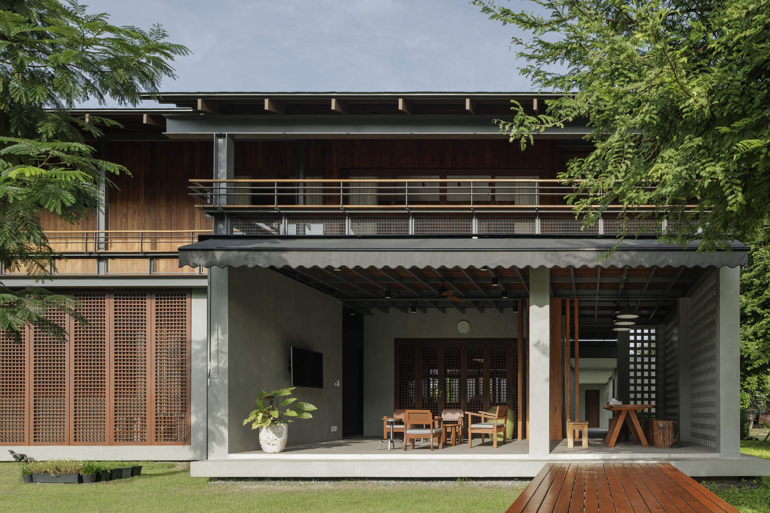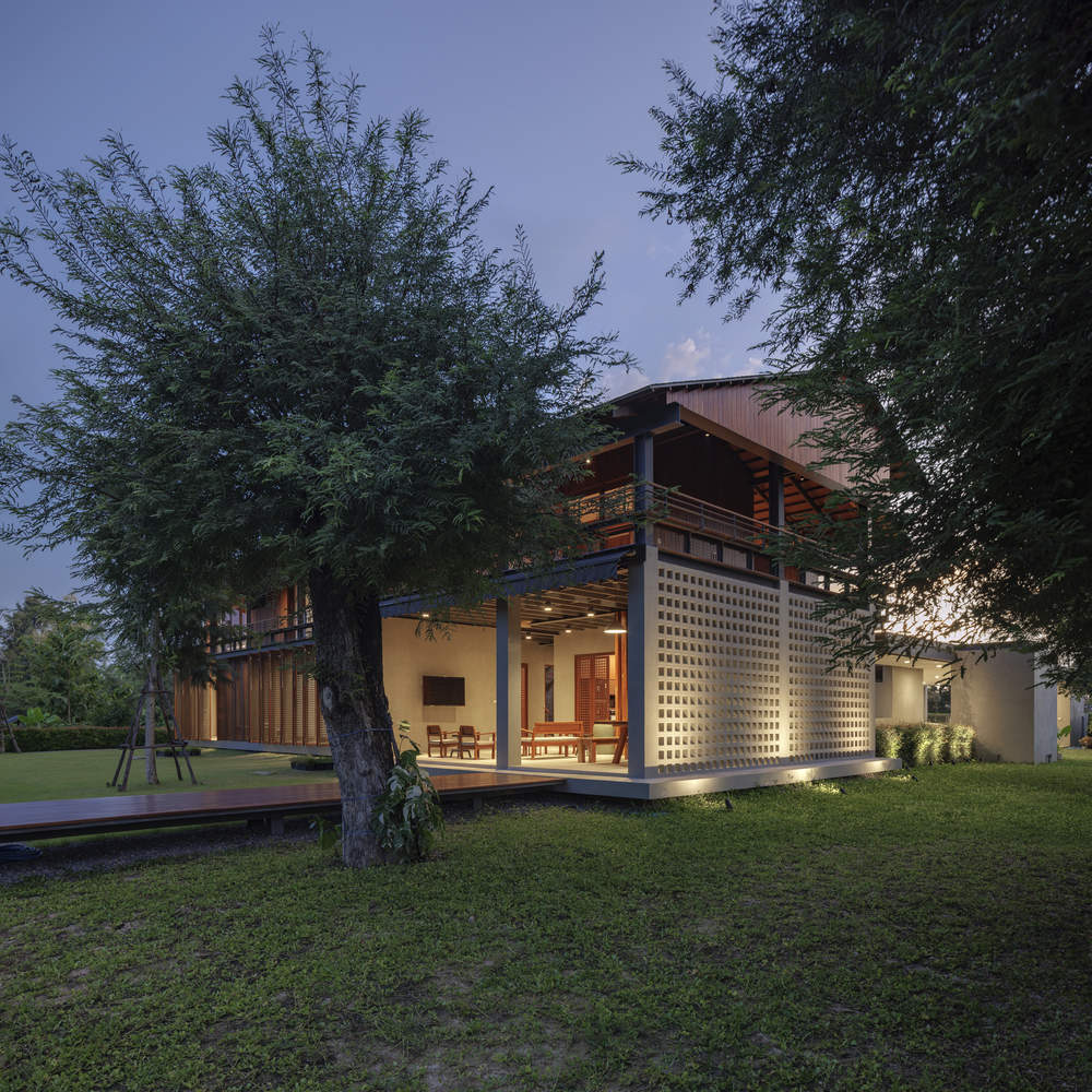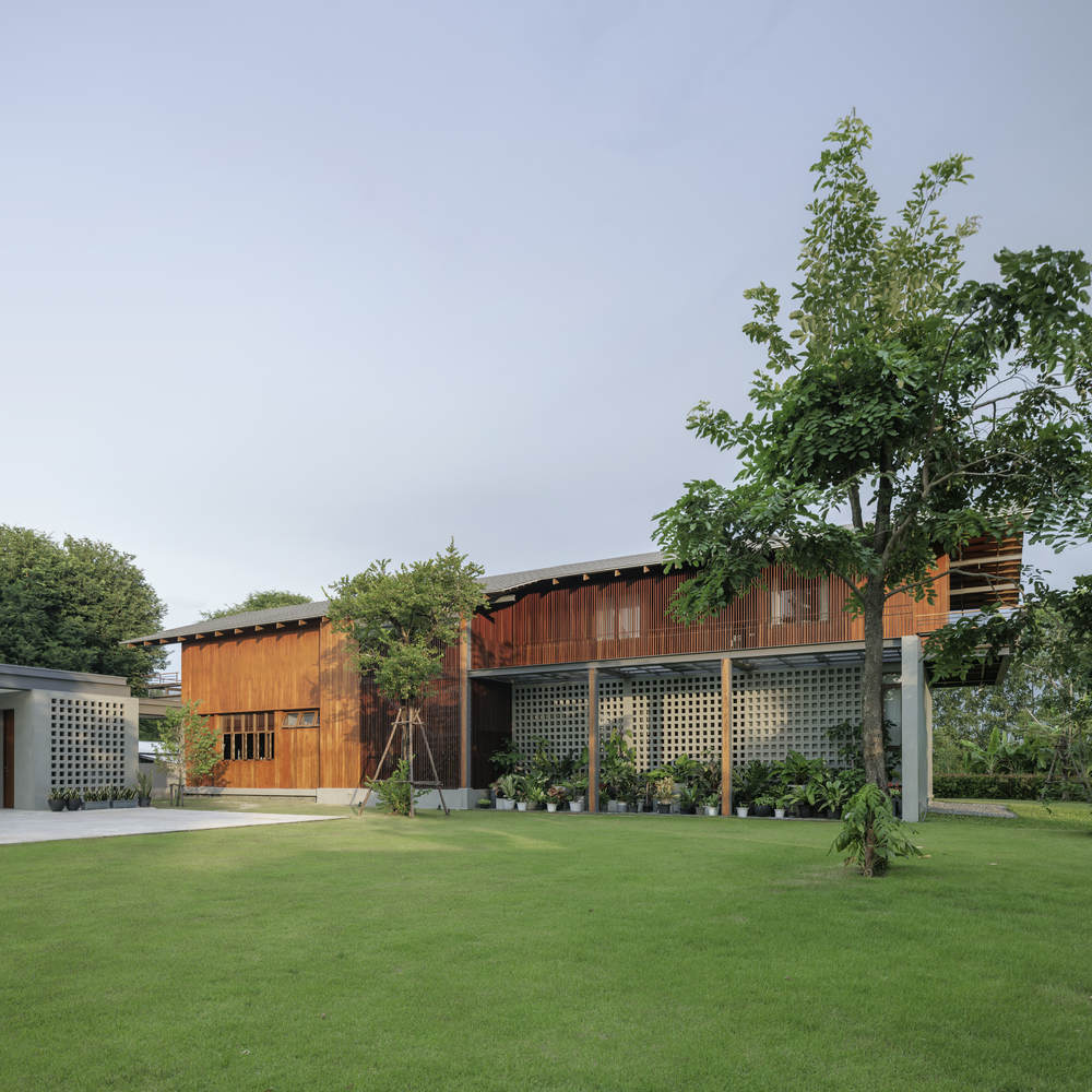 Text description provided by the architects. The house was created to accommodate the future owner's retirement. The house's owner was born and grew up in Uthai Thani Province as part of a traditional farming family. She had the opportunity to study and work in Bangkok, with the goal of returning to her quiet hometown to live with her family. The plot of land was originally owned by grandparents, but the owner's father now lives in a 100-year-old wooden house that is in disrepair. The house's owner wanted to create this new house so that her family could live together. Father, who lives according to the provincial lifestyle, prefers wood over cement, prefers natural air, and dislikes air conditioning systems. The owner of the property, who arrived from Bangkok, clearly likes a modern residence; thus, the architect's main issue was to accommodate both.