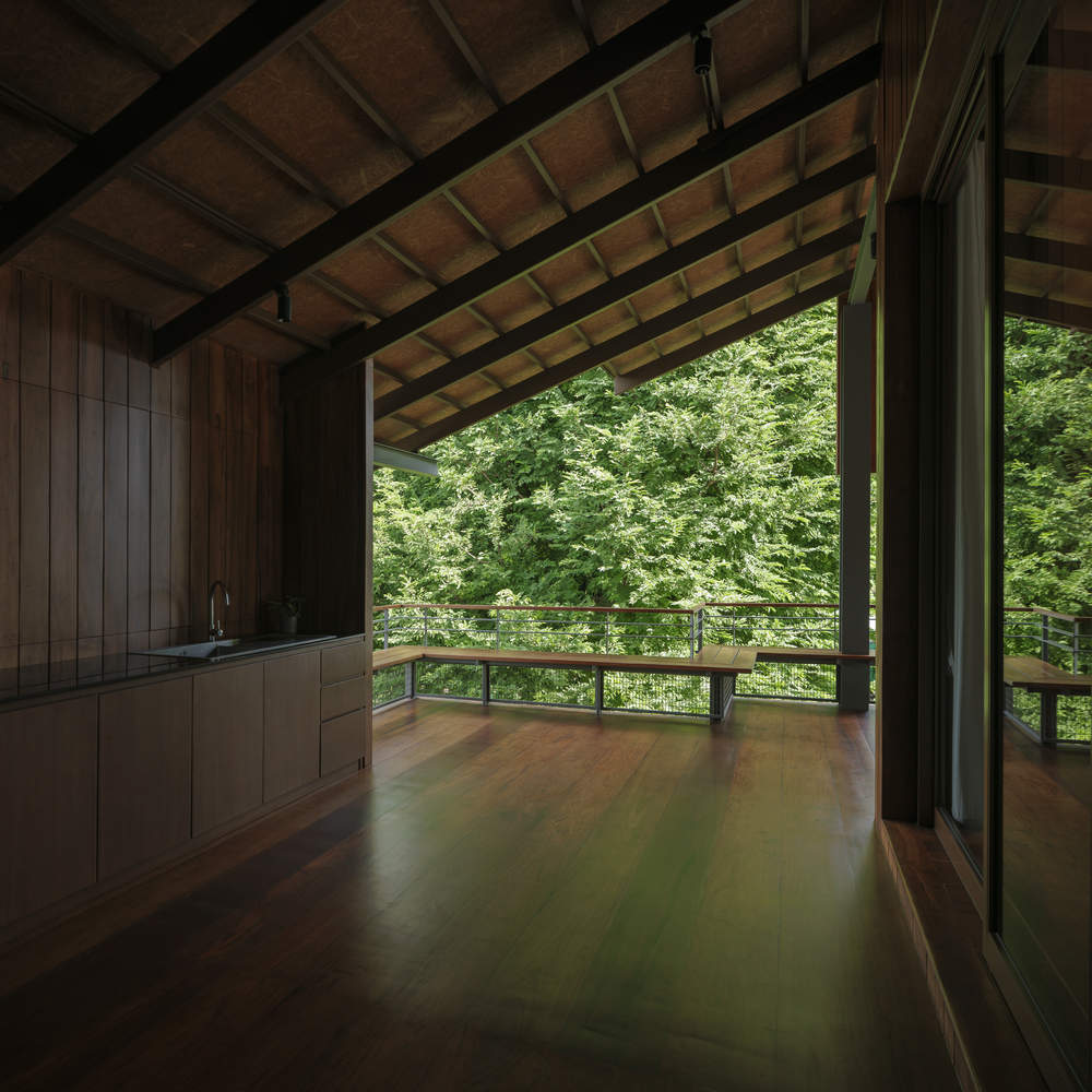 This house evolved from the owner's father's lifestyle, which included a preference for wood and traditional Thai dwellings, as well as living in space beneath a Thai house. The creator intended for the father to be able to continue living life as usual without having to modify his usage patterns, hence boosting convenience and safety. Homeowners are already accustomed to modern dwellings, so they do not need to change their behavior.