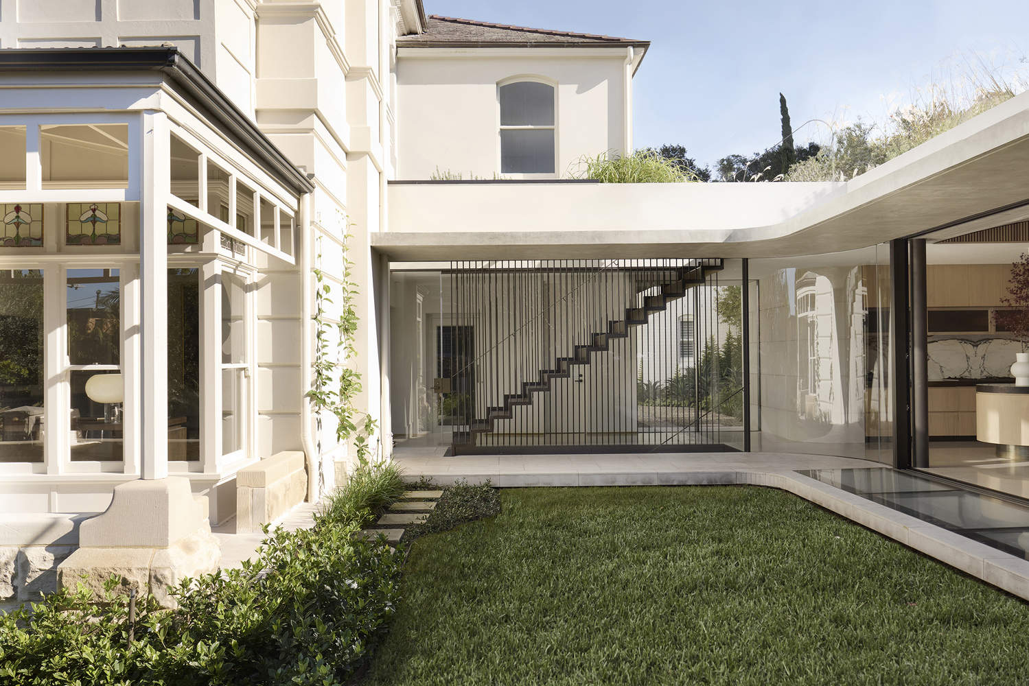 Text description provided by the architects. For centuries, buildings and towns were built layer upon layer. Churches were built on the foundations of temples, and cathedrals over churches, taller and grander; the crypts of cathedrals were often what remained of the previous church. Today, however, we are more respectful and reverential of those buildings that have survived the ravages of rapid urbanization. We tend to 'heritage list' such buildings to preserve them, and we do not build over or in front of them. That said, additions are often necessary to ensure a historic building's compatibility with our modern lifestyles, and so we seek to disguise these additions, by placing them to the rear, or in the case of this grand home, hiding them below ground level.