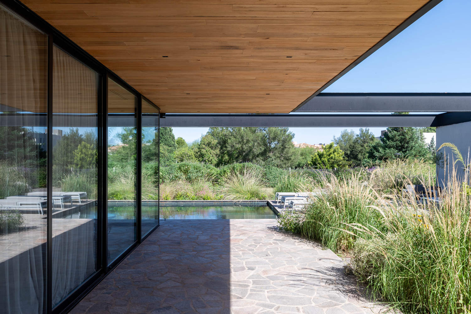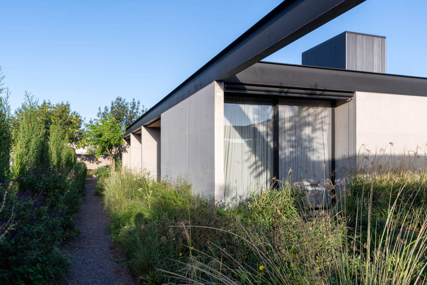 Landscape and atmosphere. From the design perspective, the creation of pathways and the generation of different atmospheres give landscaping a fundamental role. Native species from the province of Córdoba have been selected, creating a vernacular and familiar image. Groups of vegetation in various proportions respond to the outdoor use of the house, alternating to bloom throughout the seasons. This dynamism adds a unique and enriching character for the family members.