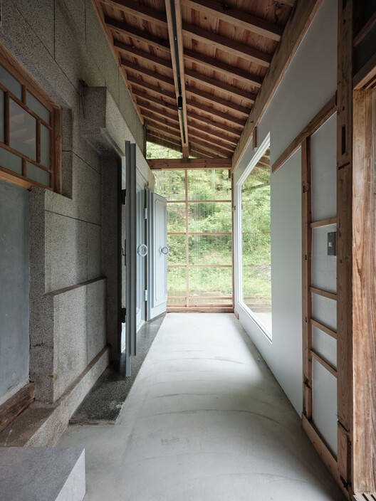 空间创新:该项目在空间创新方面也展现出独到之处。设计师打破了传统住宅的布局限制,创造了更开放、灵活的生活空间。例如,将厨房与起居室相连,增强了互动性;在二层,通过对榻榻米的翻新和装饰壁龛的改造,赋予空间新的功能和活力。对库拉的改造也是一个亮点,通过改造入口、增加窗户,使其成为连接室内外空间的纽带,并与主建筑形成视觉上的呼应。这种空间创新不仅仅是功能的提升,更是一种生活方式的转变,体现了设计师对现代生活方式的深刻理解和对空间运用的独到见解。总而言之,该项目在空间创新方面,既尊重了传统,又融入了现代元素,实现了功能与美学的完美统一。