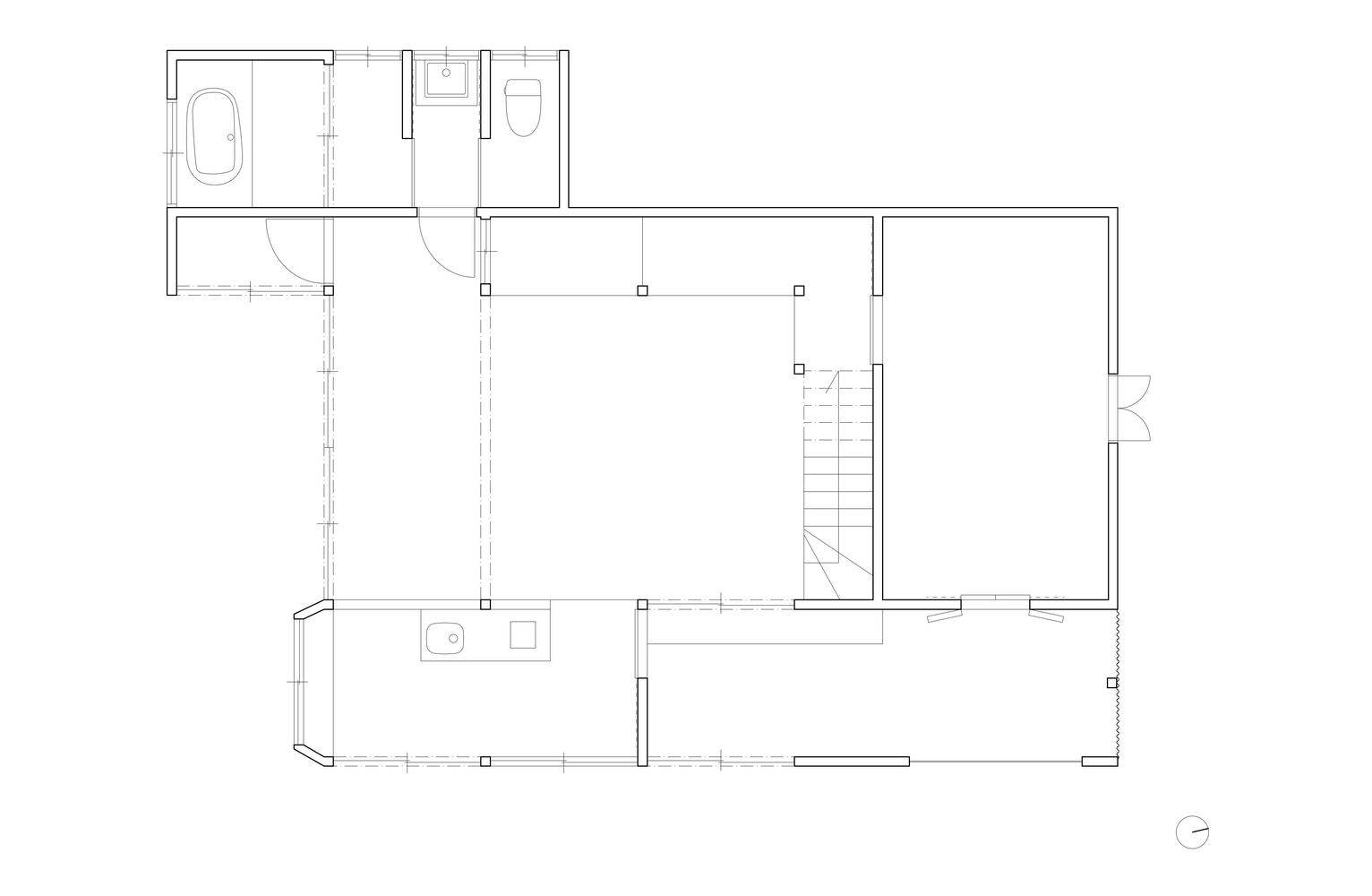 为了提高空间的功能性,库拉和主楼之间的原始分隔被拆除,创造了更灵活的布局。分隔库拉入口和主楼的墙壁被拆除,延伸入口的地板用砂浆粉刷。一楼起居区楼梯下的新开口将空间与主起居区连接起来,为kura的使用开辟了新的可能性。