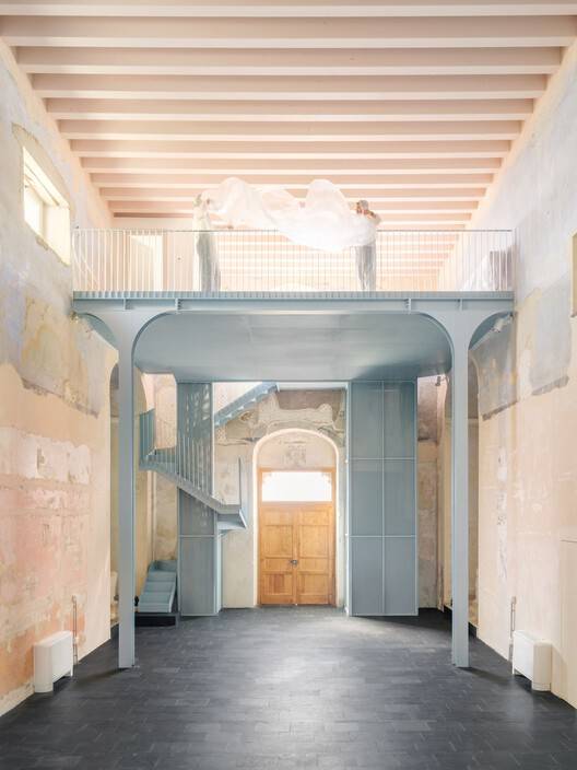 “cantoria”的巧妙置入:项目的核心设计理念在于引入了现代钢制“cantoria”结构。这个位于教堂内部的独立结构并非对原有空间的全盘颠覆,而是以一种谦逊的姿态介入。它既提供了新的功能空间——夹层楼,又巧妙地利用了楼梯和开放空间,为参观者创造了多角度的视角,使得人们能够从不同层面欣赏建筑的细节,例如十八世纪的灰泥。这种现代结构的设计也呼应了教堂原有的建筑元素,通过弯曲的“capital”与古典建筑的优雅相呼应。这种设计策略实现了功能性与美学价值的统一,同时突出了项目“文化和体验式培训中心”的定位。
