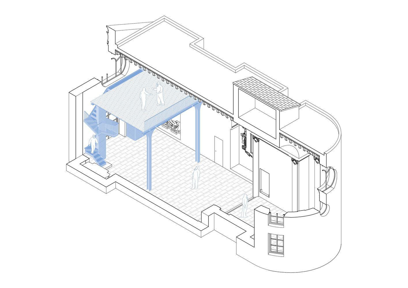 创意-2018年,PF Economy公司收购了它,为会议、研讨会和活动创建了一个文化和体验式培训中心。客户的想法是通过更私人的空间来增加可用表面积。建筑设计由位于热那亚的建筑和景观工作室caarpa完成。结构设计由EXA工程公司完成。该项目的理念是创造一个当代的钢制“cantoria”(一种典型的意大利教堂唱诗班)。