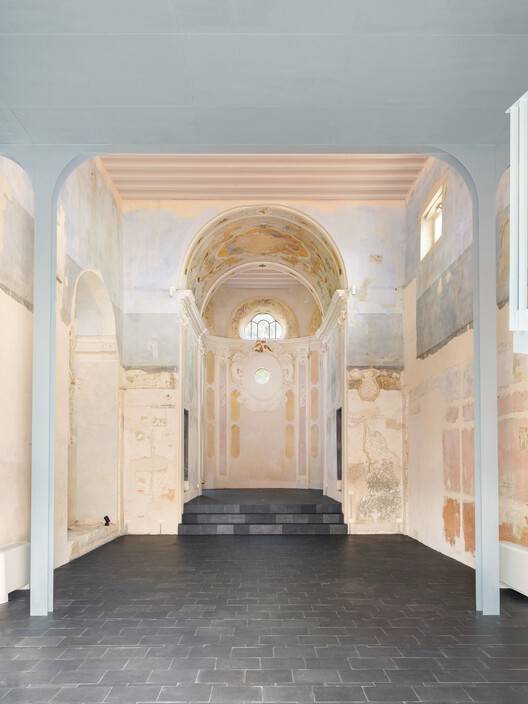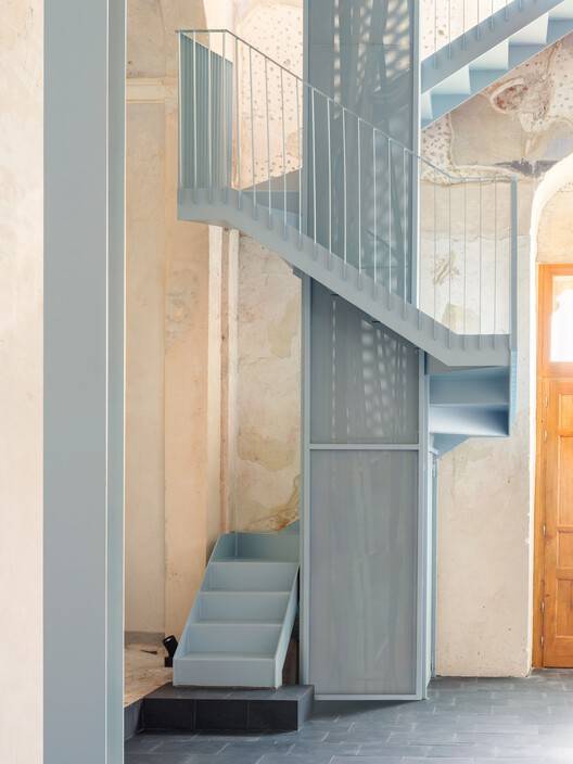 历史与现代的对话:该项目最引人入胜的亮点在于它成功地将历史建筑的沧桑与现代设计语言完美融合。设计团队没有选择简单地复制或掩盖历史,而是通过对原有教堂结构的审慎保留和改造,创造了一种新旧对话的氛围。在修复过程中,设计者刻意保留了建筑在不同历史时期的痕迹,包括二十世纪的修补和斑驳的灰泥,这不仅是对历史的尊重,也赋予了建筑更丰富的叙事性。这种处理手法打破了传统修复的束缚,使得建筑在保留历史感的同时,焕发出新的生命力。