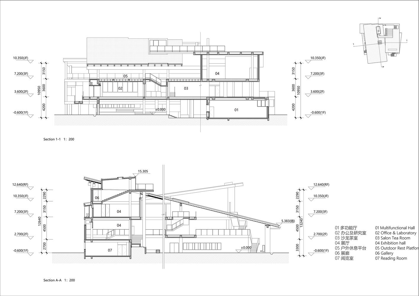 建筑师通过空间原型表达文化记忆:面向主街的低檐唤起了寺庙门廊的意象,而上升的台阶和升高的屋顶则反映了传统寺庙的情感空间技巧。屋顶的钢结构和混凝土主体之间的分离允许表达结构元素,巧妙地参考了祠堂的木结构。入口屏风上装饰着836块明代古砖,其下是古城墙遗址,通过“考古展览”的叙事揭示了遗址的历史层次。