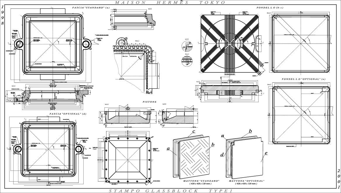 At the heart of Maison Hermès lies its intricate glass façade, composed of custom-designed glass blocks manufactured by Vetroarredo in Florence, Italy. Each block measures 450 mm square, significantly larger than standard glass blocks, and features a stamped textured finish that makes them translucent rather than transparent. This subtle opacity creates a shimmering surface that evokes the delicate glow of a Japanese lantern, diffusing natural light into the interiors by day and radiating a warm, ambient glow by night.