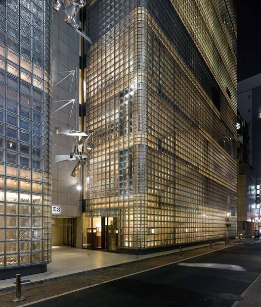 AD Classics: Interdesign Building / Khalil KhouriMaison Hermès的核心是其复杂的玻璃立面,由意大利佛罗伦萨Vetroarredo制造的定制玻璃块组成。每块尺寸为450平方毫米,明显大于标准玻璃块,并具有冲压纹理饰面,使其半透明而非透明。这种微妙的不透明创造了一个闪闪发光的表面,唤起了日本灯笼的精致光泽,白天将自然光漫射到室内,晚上则散发出温暖的环境光。