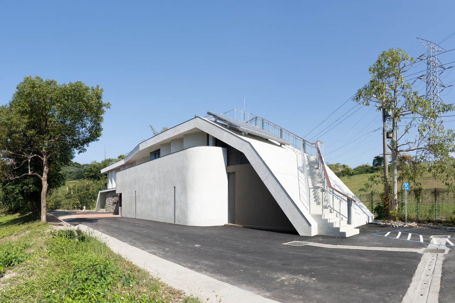 Text description provided by the architects. The Hushan Reservoir Environmental Education Center, located in Douliu City, Yunlin County, Taiwan, was established as part of conservation and local compensation efforts during the reservoir's construction. Originally proposed as an environmental and ecological education hall, the center was later added to accommodate local residents' expectations. Together with the reservoir, ecological conservation area, and nearby settlements, it forms a comprehensive environmental education park promoting natural ecology, cultural heritage, and community life development.
