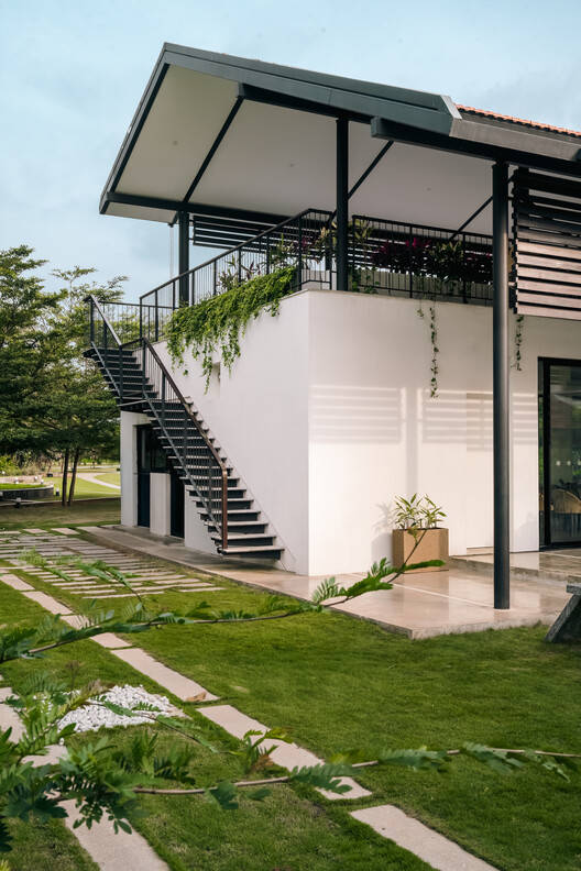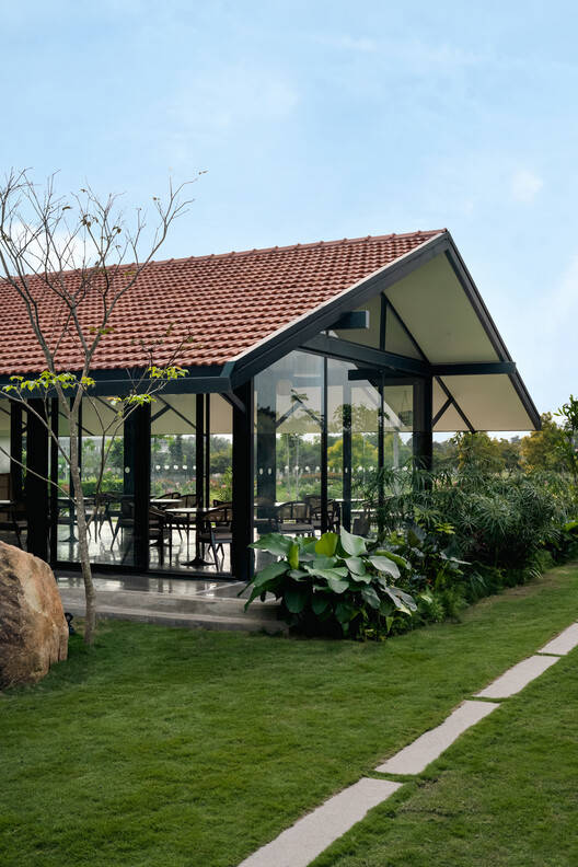 Text description provided by the architects. The Clubhouse at Eden 144 is a social, recreational, and fitness hub that seamlessly blends into its natural and residential surroundings. Positioned to engage with the adjoining landscaped park, it serves as a welcoming space for both quiet retreat and shared experiences. The careful balance of built and open spaces, light and shade, and solid and permeable elements creates a setting that feels both grounded and open.