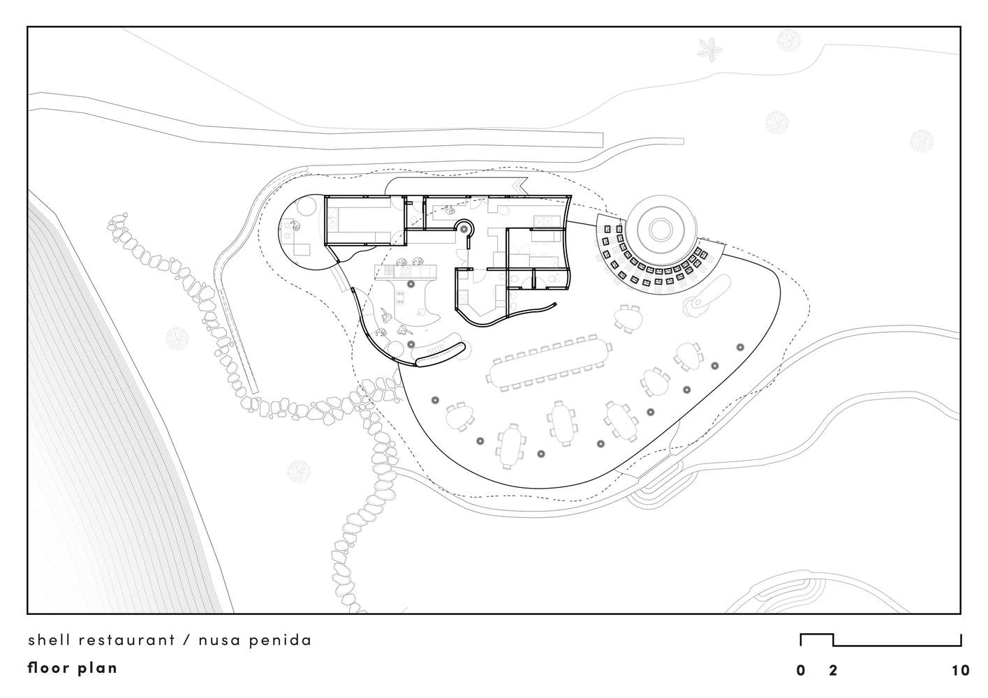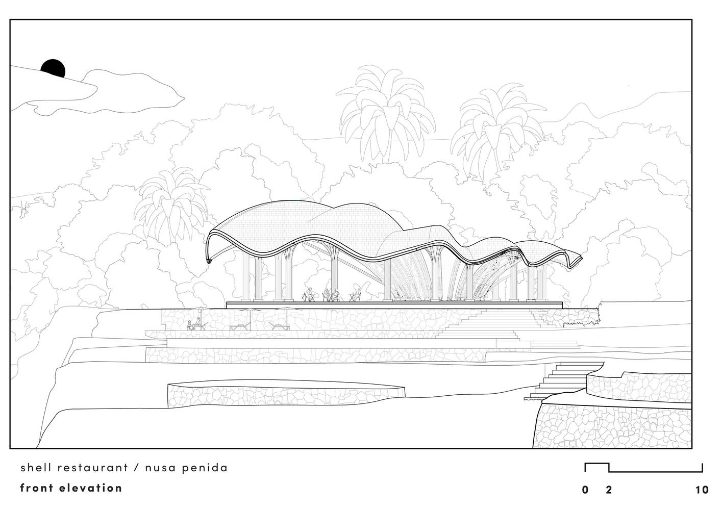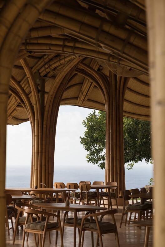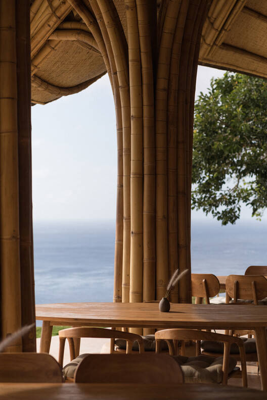 Text description provided by the architects. The Shell Restaurant is an integral part of Intaaya Retreat, a project designed and built by Pablo Luna Studio on the cliffs of Nusa Penida, Bali. Conceived as an architectural response to its surroundings, it integrates seamlessly with the landscape while prioritizing sustainability. Every design decision was made with a commitment to minimizing environmental impact—adapting the construction to the terrain and using locally sourced materials.