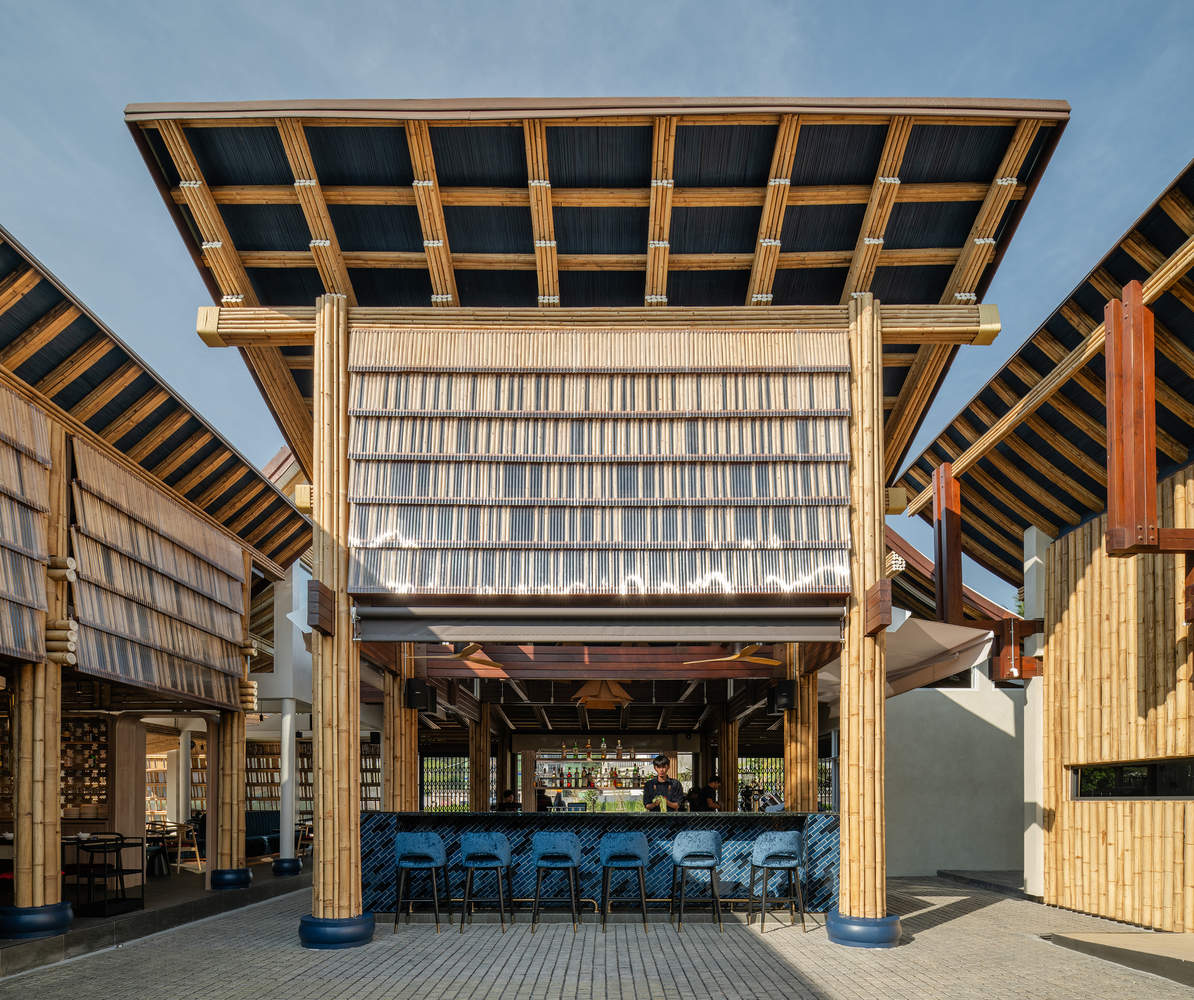 可持续材料与地域特色:项目的亮点之一在于对可持续材料和地域特色的高度重视。通过与竹子建筑专家的合作,设计师充分利用当地的天然材料,特别是竹子,构建了餐厅的主体结构。这种策略不仅降低了对环境的影响,也赋予了建筑独特的质感和视觉效果。蓝色染色竹子的运用,更是对当地材料的创新性探索,既呼应了鱼鳞的主题,又增加了设计的趣味性和辨识度。这种对可持续材料和地域特色的关注,体现了设计师对环境保护和当地文化的尊重,为其他建筑项目树立了良好的榜样。