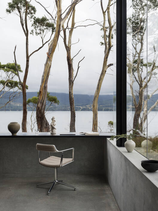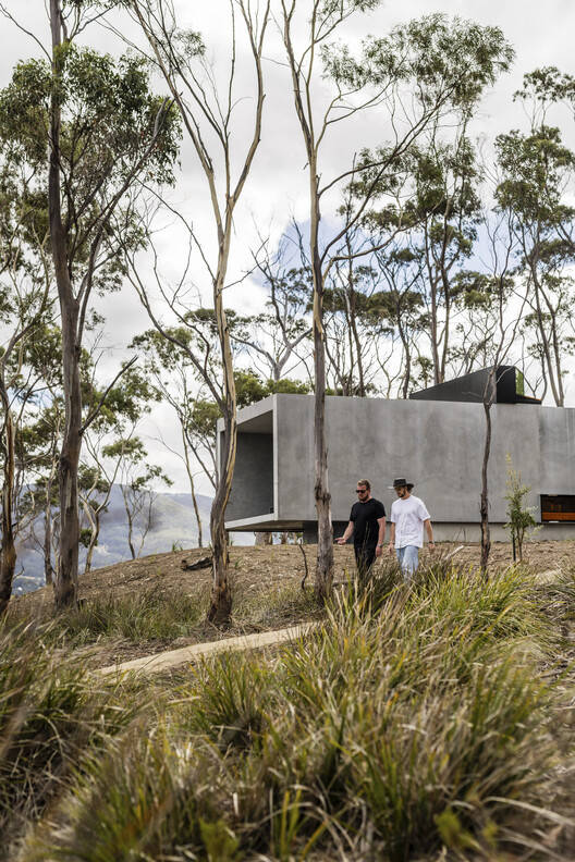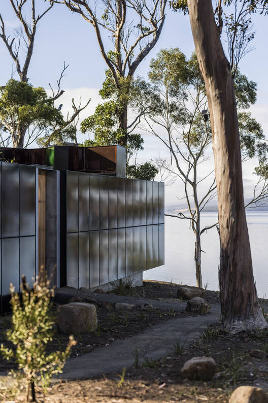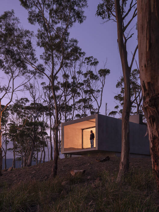 Text description provided by the architects. Danish design brand Vipp travels to the Southern Hemisphere for the brand's newest guesthouse. Cantilevered over a sloping hill on Tasmania's Bruny Island, the architecturally daring and sustainably designed Vipp Tunnel by Hobart-based studio, Room11, balances beauty and brutalism. Featuring a series of outdoor sculptures by renowned Danish artist Lin Utzon, this ground-up property becomes a unique refuge that marries art, design, and nature.