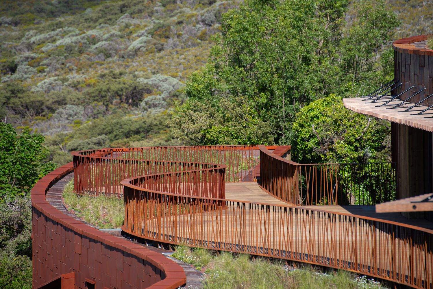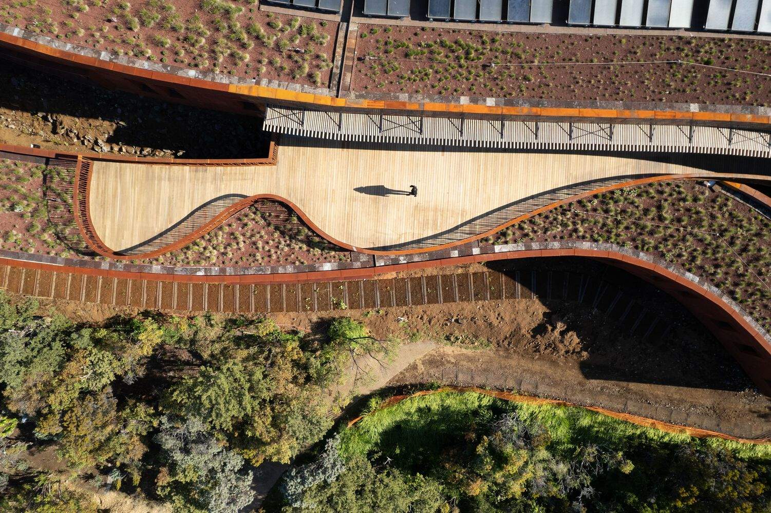 将盖特融入这片高海拔景观也带来了生态挑战。该实验项目包括种植34种以前从未种植过的特有植物。从周围的自然环境中收集种子和插条,在现场种植了5000多棵树木和灌木,以及数千株草植物,用于屋顶绿化。这项工作是与马斯克林国家植物园、国家公园和法国国家森林局合作进行的。这个项目不仅仅是一项建筑成就,它完全沉浸在一个独特而脆弱的生态系统中,向火山和留尼旺岛的自然美景致敬。