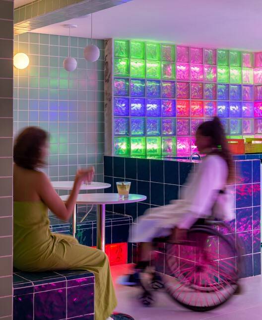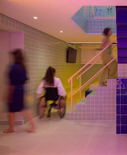 空间设计的独特性与创新:从图片中我们可以看到,这个项目在空间设计上展现出极高的独特性和创新性。设计师巧妙地运用了材料、光线和空间布局,营造出一种既私密又开放、既舒适又充满刺激的氛围。比如,对镜面、玻璃等元素的巧妙运用,不仅增强了空间的视觉效果,也拓展了身体的感知边界。此外,项目对无障碍设计的关注也令人印象深刻。它不仅仅是满足规范要求,而是从性行为的角度出发,思考如何让不同身体的人都能在这个空间中自由、舒适地体验。这种对多元化需求的包容性是设计理念的重要体现。