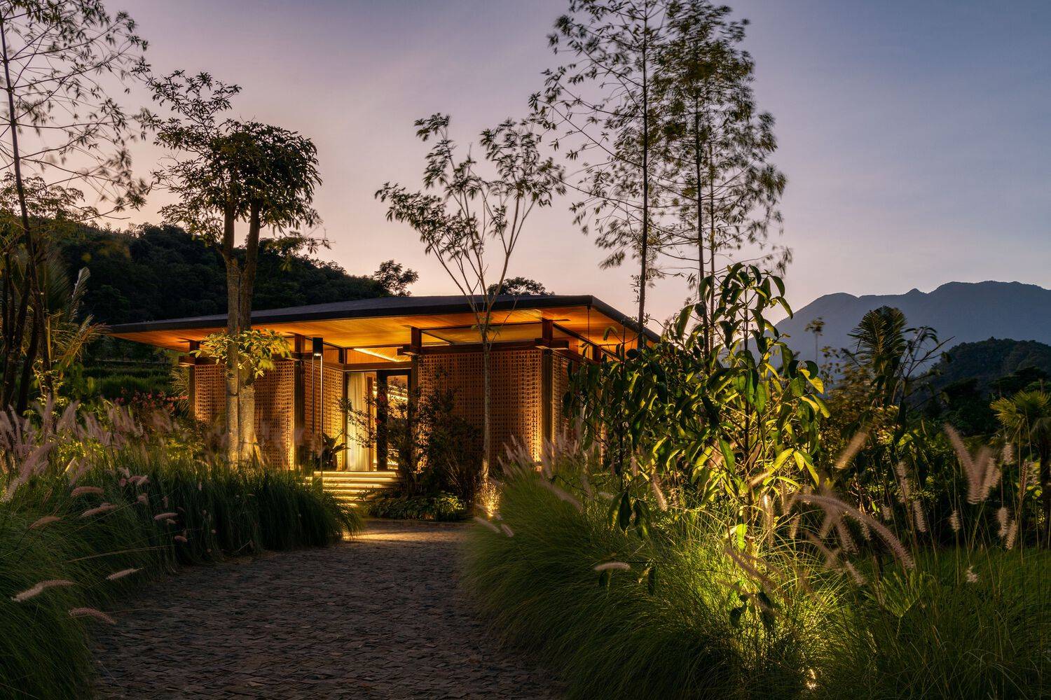 新娘别墅的设计与家庭别墅相似,但规模较小。这座单层建筑俯瞰着稻田和山脉,为新娘和新郎提供了一个私人度假胜地,距离教堂仅几步之遥。将大院与主街连接起来的是一座由竹拱构成的桥梁,它反映了传统巽他篮子的弯曲设计,既是一条功能性的通道,也是一个风景优美的照片背景。