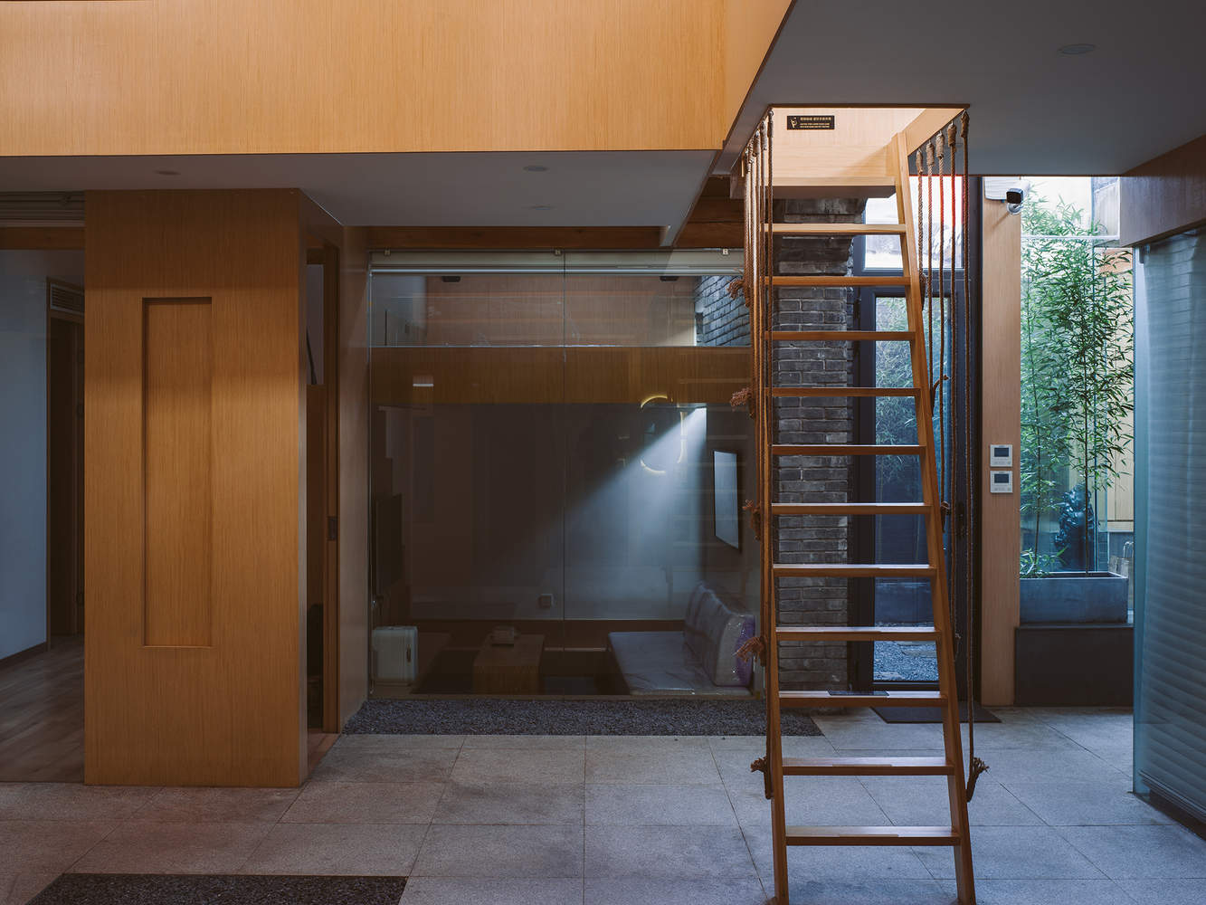 The design divides the original courtyard space and lifts it up. From the eaves, a "pigeon cage" grows out, breaking through the original roof. The new space set up above this "sea of tiles" is completely free from social attributes and is an independent space for personal dialogue with nature. Pushing open the "skylight" is like climbing onto the roof of the house, but you are still inside. Part of the original building's tiled roof also extends into the interior. Just like the place where Li Tiantian and Guan Qiaohong met in "Devils on the Doorstep", the roof of a Beijing quadrangle courtyard house is one of the few places within the city walls that offer freedom, romance and the ability to clear one's mind.