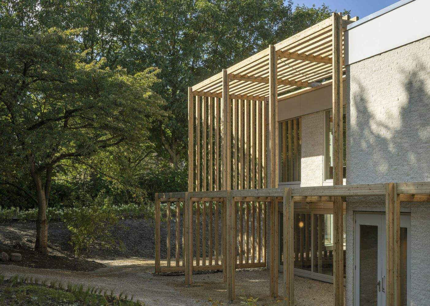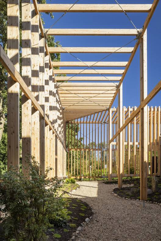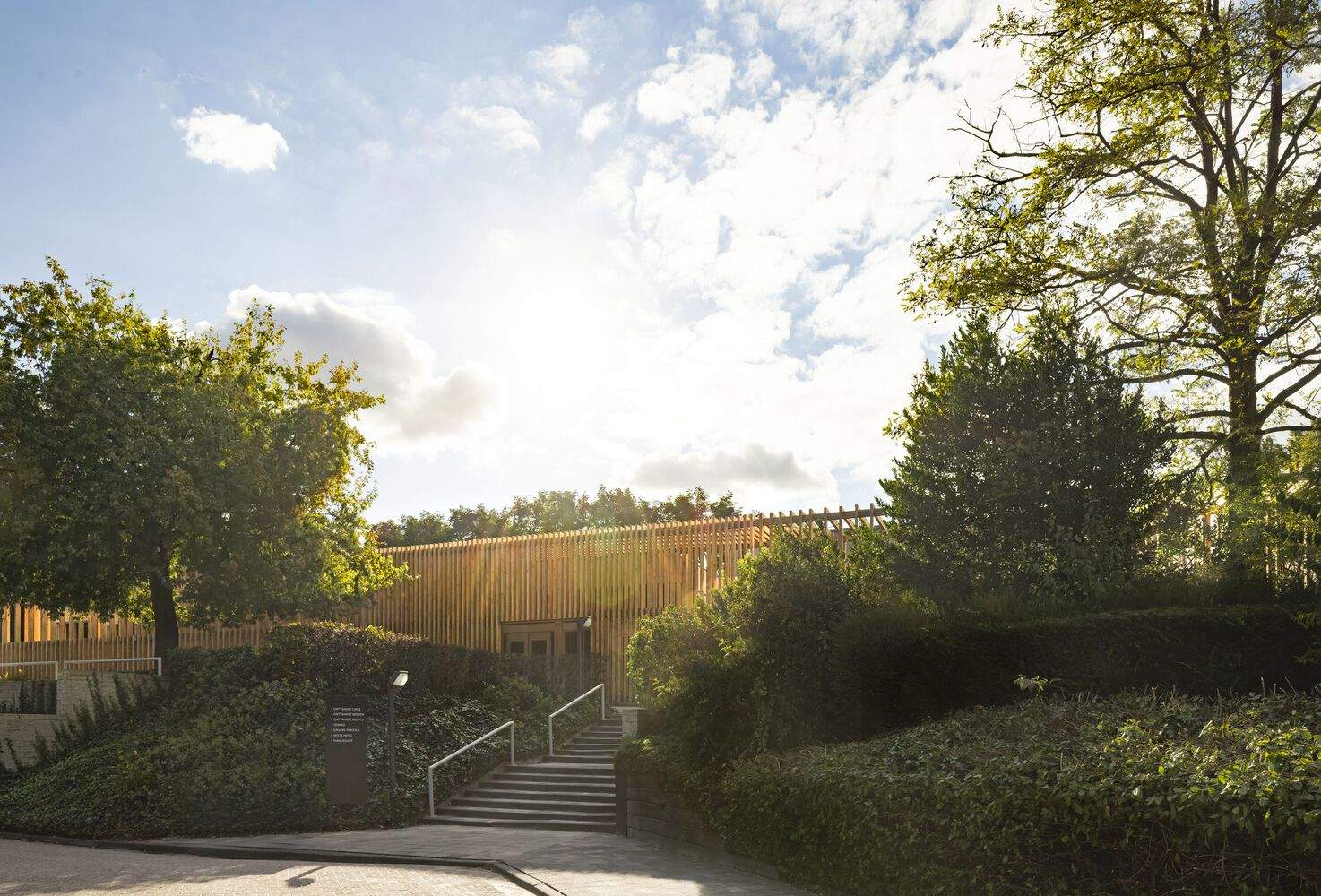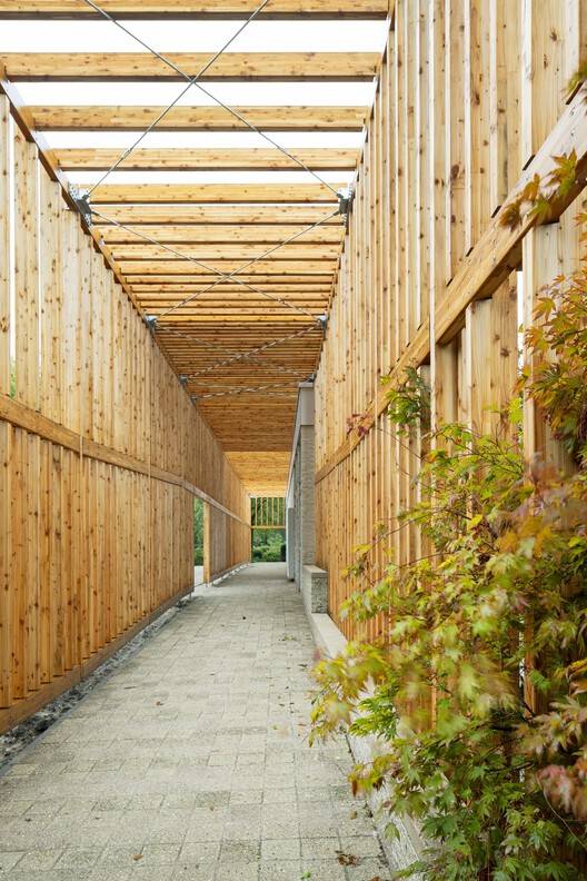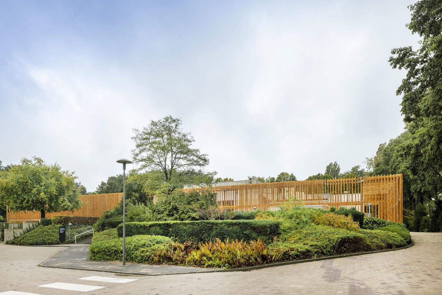 The wooden structure is a carrier of identity and rituals - Doepel Strijkers analyzed the untapped potential of the existing crematoria. Their ambitious approach resulted in a concept that gives a new identity to the outside and inside of the building, connects indoor and outdoor spaces, uses nature as a carrier of the spaces, and integrates technology to enable customers to create tailor-made rituals for their loved ones.