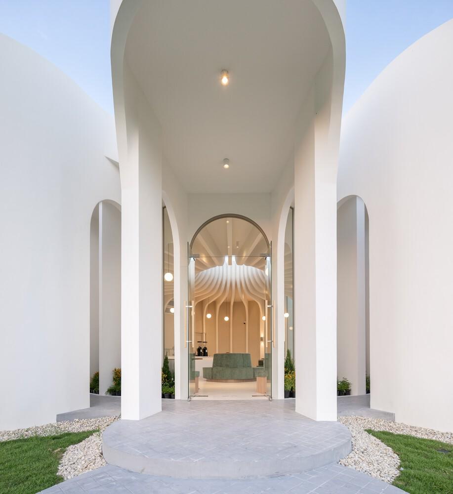 建筑师提供的文字描述曼谷工业景观中盛开的花朵。Curvy Dining由Unknown Surface Studio设计,是一家精致的白色餐厅,位于曼谷Soi Srinakarin-Rom Klao 19的工业景观中。这一贡献将一个广阔的、无边界的场地变成了一个独立的餐厅,其精心设计旨在促进建筑与自然之间的无缝对话。咖啡馆平衡了开放性和封闭性,创造了一个吸引人的空间,模糊了建筑形式和周围环境之间的界限。