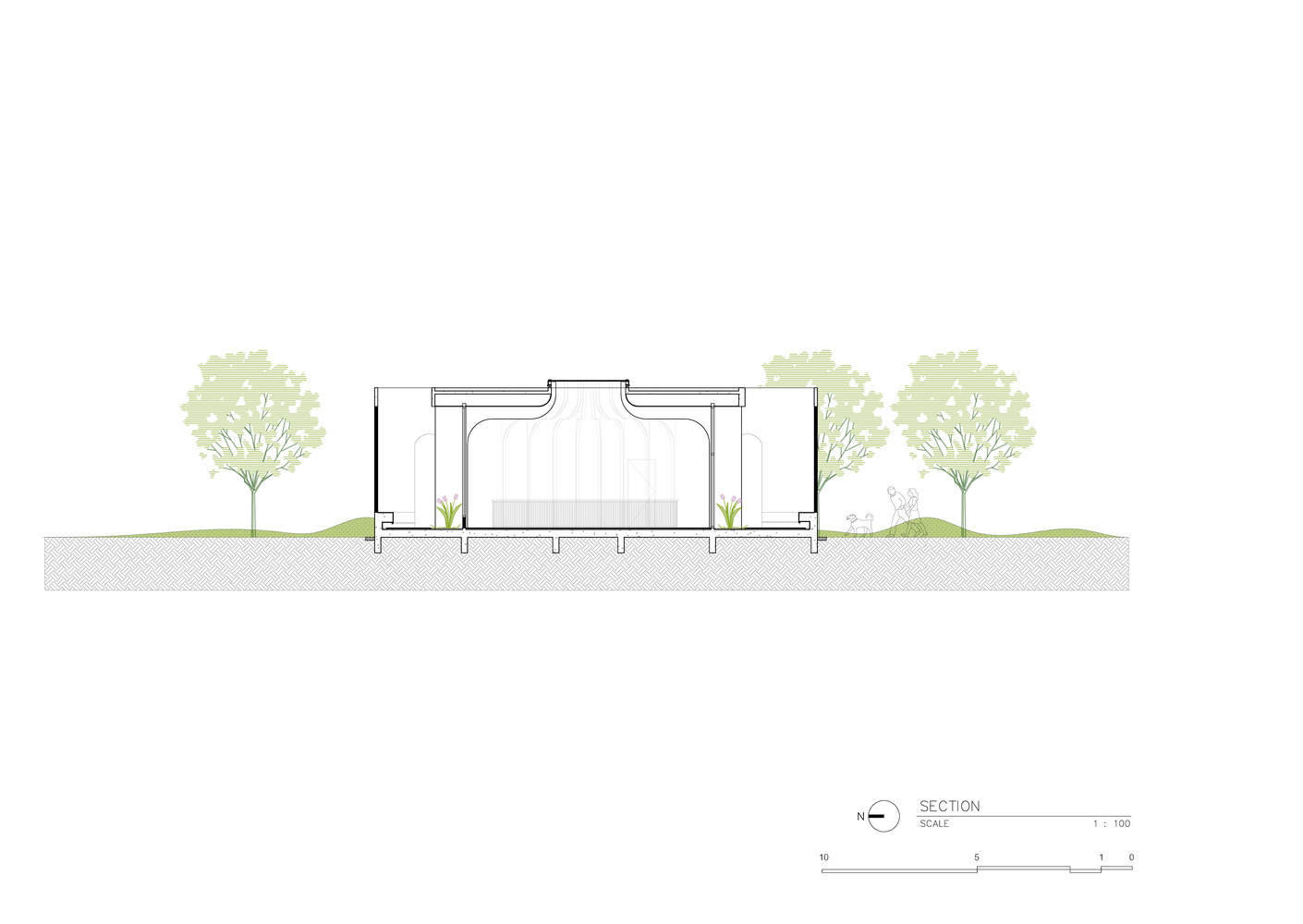 为了形成对比,外边界遵循方形框架,在原本开放的景观中提供了一种定义感。然而,这家咖啡馆的流通遵循了一种减法设计方法——空间被雕刻出来以定义运动,当游客在室外区域穿行时,创造出一种缓慢的展示。这些路径与绿色口袋交织在一起,形成了一种自动景观效果,建筑和自然光无缝共存。