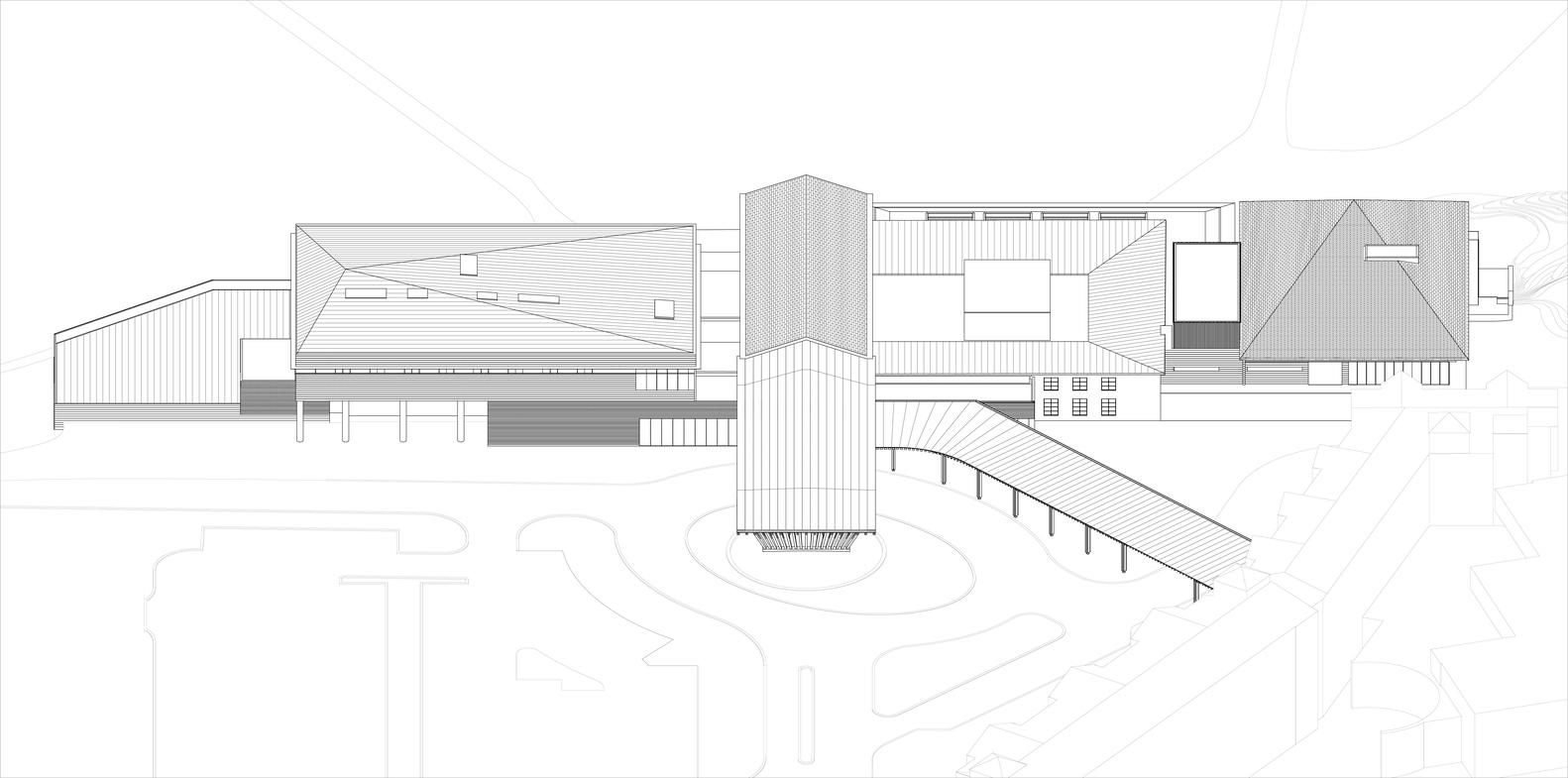 首先,为了解决储物柜空间短缺的问题,一楼的储物柜被指定为男性使用,而垂直扩建在二楼创造了一个新的女性储物柜区域。该计划允许在冬季灵活使用,将一楼的储物柜分为男女两部分。现有的朝东餐厅空间进行了扩建,包括露台,确保了一个可以与普通游客共享的多功能空间。在南侧,为起始屋和私人餐厅创建了一个新的附属建筑,以满足各种客户需求。新安装的前天棚和扩建的大众屋顶被设计为山墙和平屋顶形式的组合,旨在成为Seolhaeone的新象征。