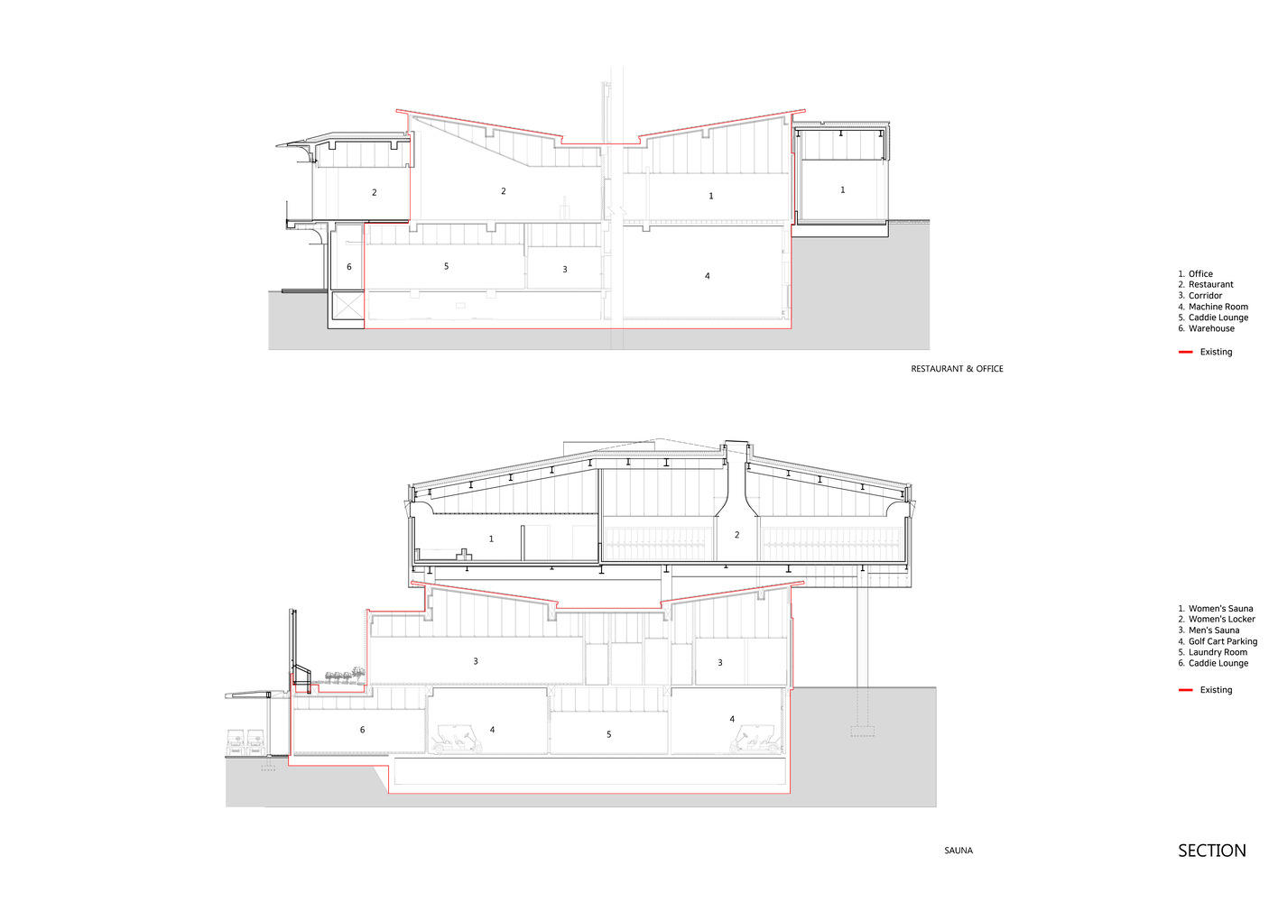 建筑师提供的文字描述首尔会所的扩建是为了满足高尔夫球场扩建、餐厅升级和新推车存储设施对额外储物柜的需求。虽然表面上看起来是俱乐部会所的改造,但本质上就像重建一个总体规划,需要解决现有俱乐部会所存在的客户流、管理流通和停车问题,同时也反映了根据长期发展计划进行扩张的可能性。
