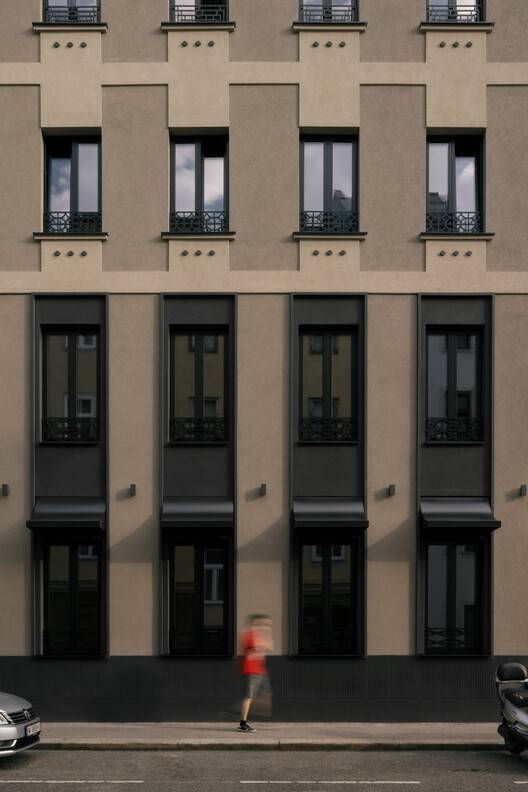 Text description provided by the architects. Hotel Welt Wien was designed with the aim of bringing the spirit of the "Wiener Werkstätte" into the present. The building, a turn-of-the-century tenement, is located at a prominent corner in Vienna's 12th district. The design emphasizes respecting tradition while incorporating modern design, reinterpreting historical style elements in a contemporary way.