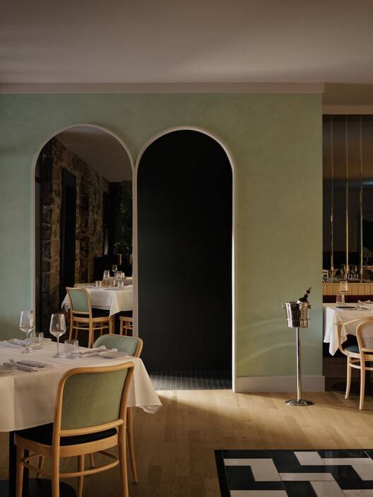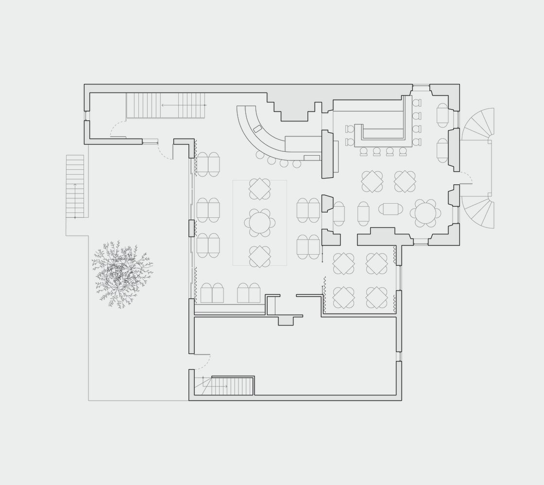 功能布局与细节设计:Piatti餐厅的功能布局和细节设计也体现了设计师的匠心独运。餐厅分为三个不同的用餐区,每个区域都拥有独特的氛围,满足了不同顾客的需求。主楼梯的设置连接了上下两层,方便了顾客的流动。细节方面,从手工抹灰的墙面、定制设计的凳子,到带有图案的大理石地板,都体现了设计师对品质的极致追求。限量系列的石膏画与餐厅的整体风格相协调,也为空间增添了艺术气息。整体而言,项目将功能性与美观性完美结合,不仅为顾客提供了舒适的用餐体验,也展示了卓越的建筑设计水平,从一个被火灾摧毁的空间中创造出新的生机。