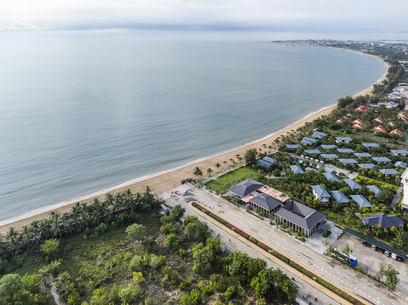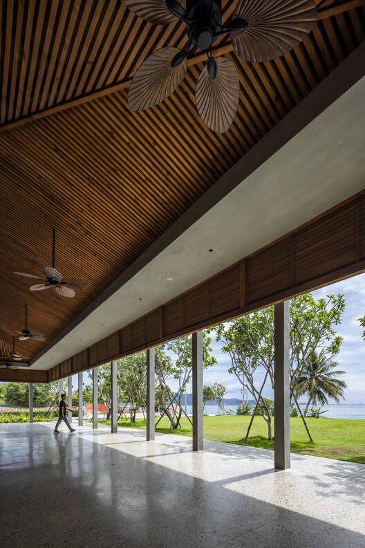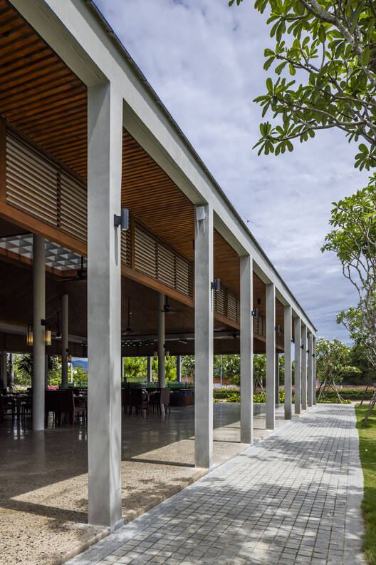 Text description provided by the architects. Hai Au Restaurant is located on the land of the old restaurant, in the Hoan My Resort. The land is adjacent to Nguyen Thi Minh Khai Street connecting to Binh Son Beach, which is the main traffic axis for people in the whole city to go swimming. With the characteristic of a narrow land shape, stretching along the East-West axis towards the sea. Therefore, the design plan is placed in the relationship between: the overall existing resort - people - natural landscape along the coast. The plan is carefully studied for a friendly, open architectural form, adapting the existing values on the land. The project has a scale of 1 floor, with a reasonably distributed layout that allows the green core to be interwoven deep into the project and condensed in architectural lines.