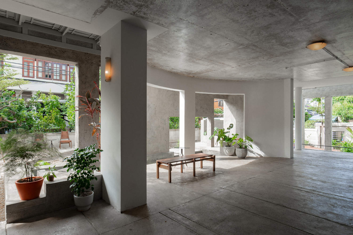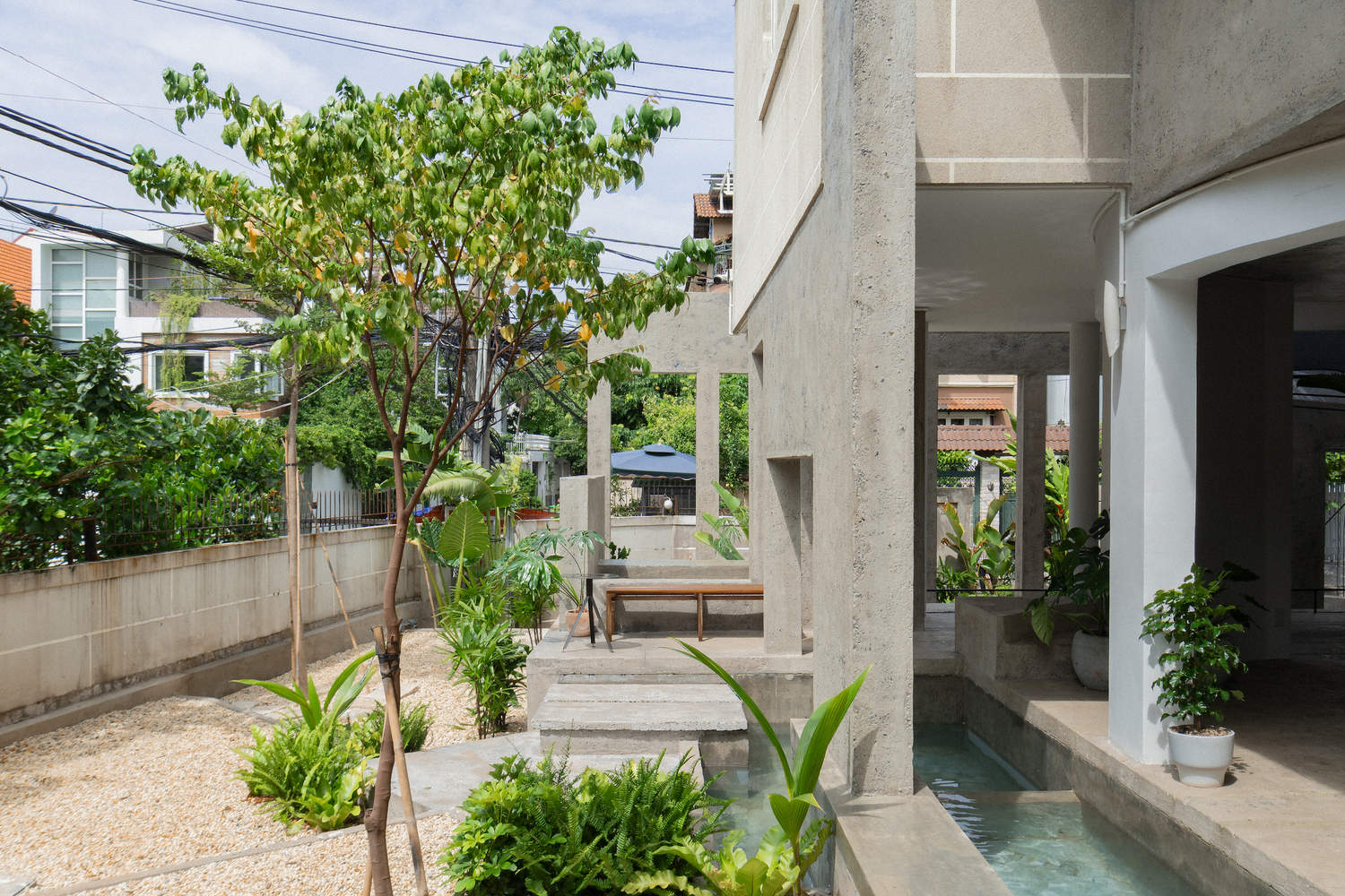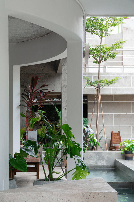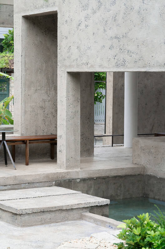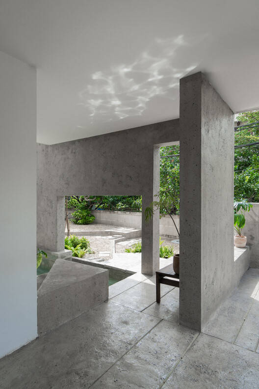 建筑师提供的文字描述Text description provided by the architects. Thao Dien is a high-standard living area in Ho Chi Minh City, predominantly inhabited by the middle class. The architecture in this area reflects a perspective of detachment from context – a deliberate disregard for integration, vividly marked by perimeter walls reaching 2.6 meters high – the maximum allowable height for structures in this area. In reality, some houses have exceeded this height to fulfill the utmost need for privacy. The building, prior to renovation, was an abandoned house for five years. This is a region often facing tidal flooding, prompting the former owner to establish a base floor height of 1100mm from the sidewalk – including the garden.
